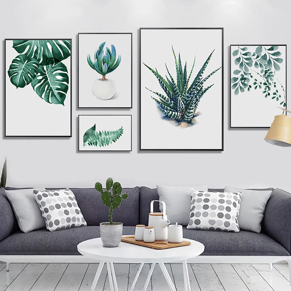 Картина на холсте растительная зелень листья картина художественный плакат Настенный декор для офиса комнаты