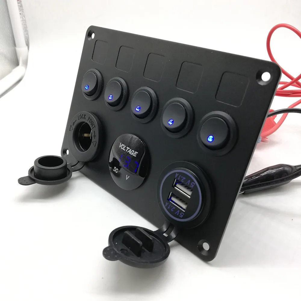 1. Многофункциональная-эта панель переключателя многофункциональна, она включает в себя 5 ВКЛ-ВЫКЛ 3pin синий светодиодный кулисный переключатель, двойной USB порт, гнездо прикуривателя и цифровой вольтметр.