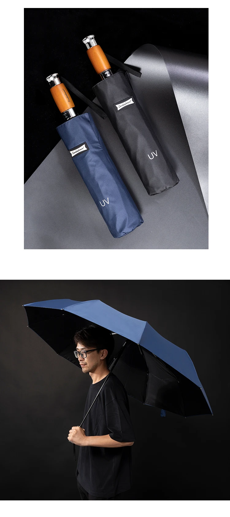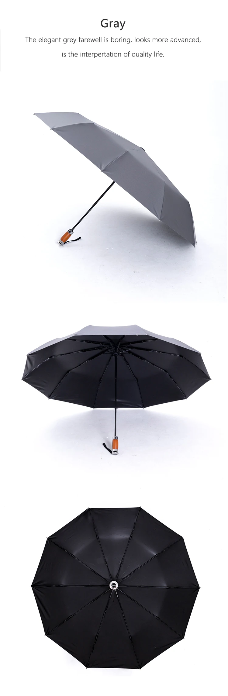 Нажмите кнопку, чтобы открыть и закрыть зонт, простой и удобный в использовании. Качественная древесина с превосходным металлом делает ручку роскошной, эргономичный дизайн ручной установки.