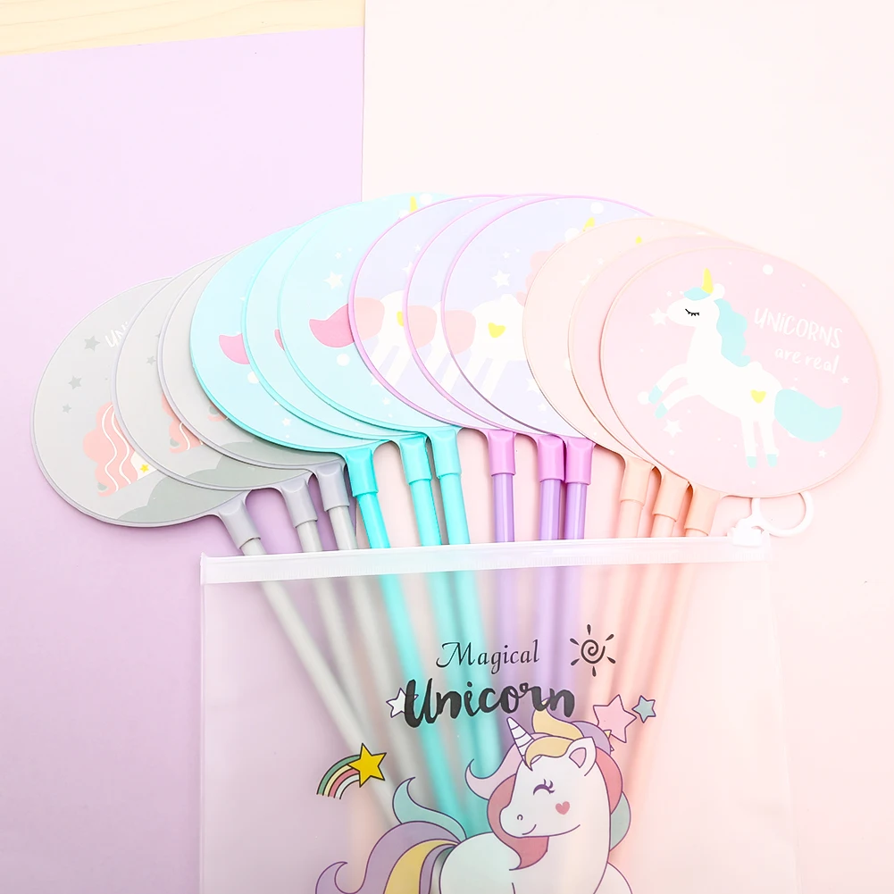 12 шт. Корейская Радужная гелевая ручка с единорогом Kawaii Милая школьная стационарная поставка Материал Kawai офисные Детские аксессуары Bts