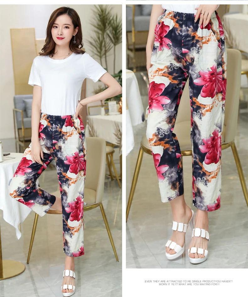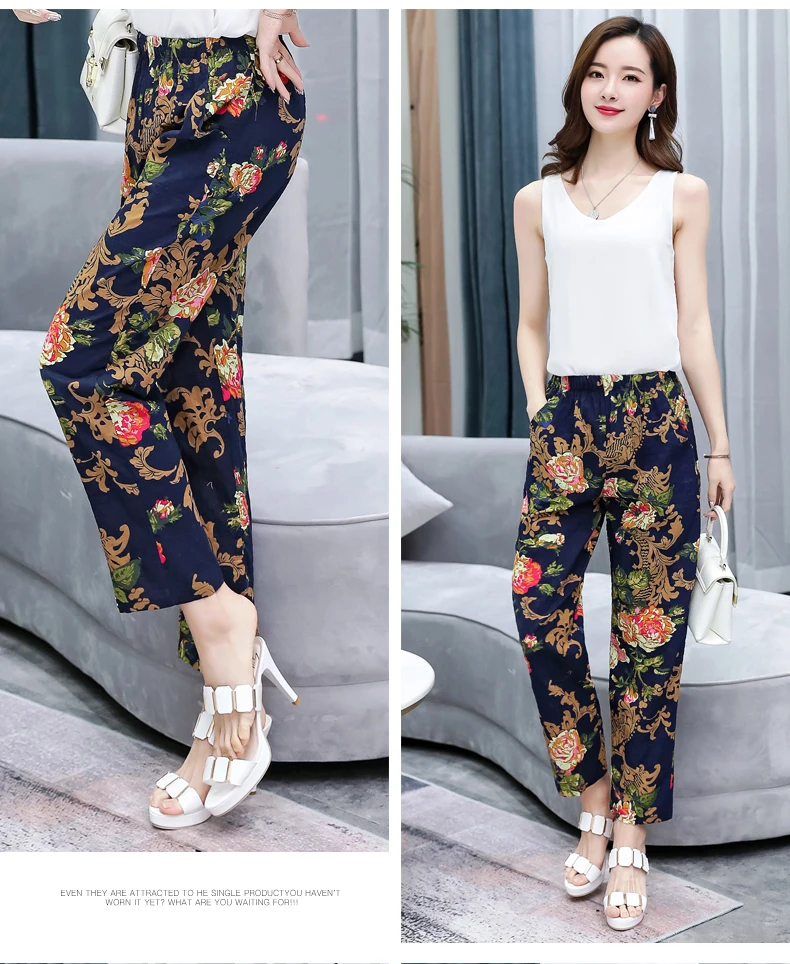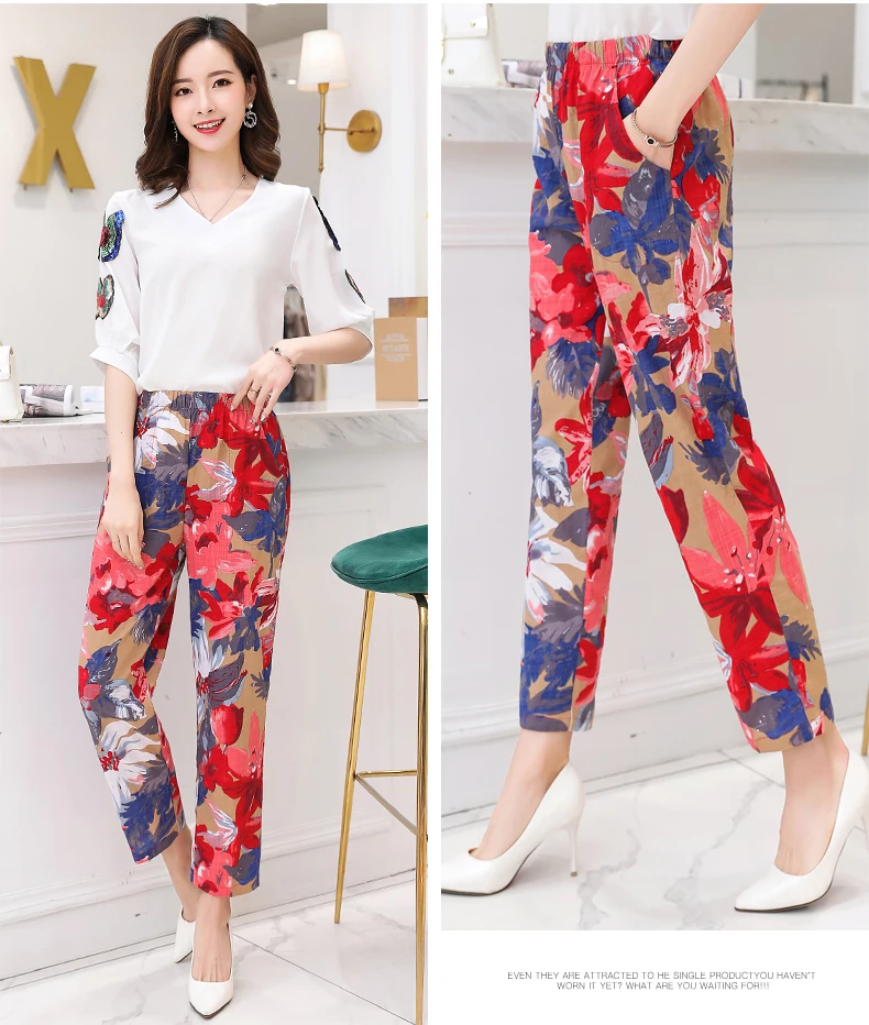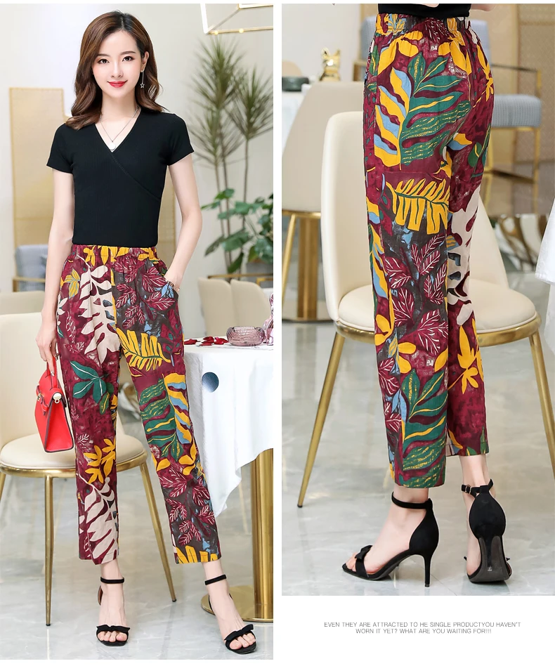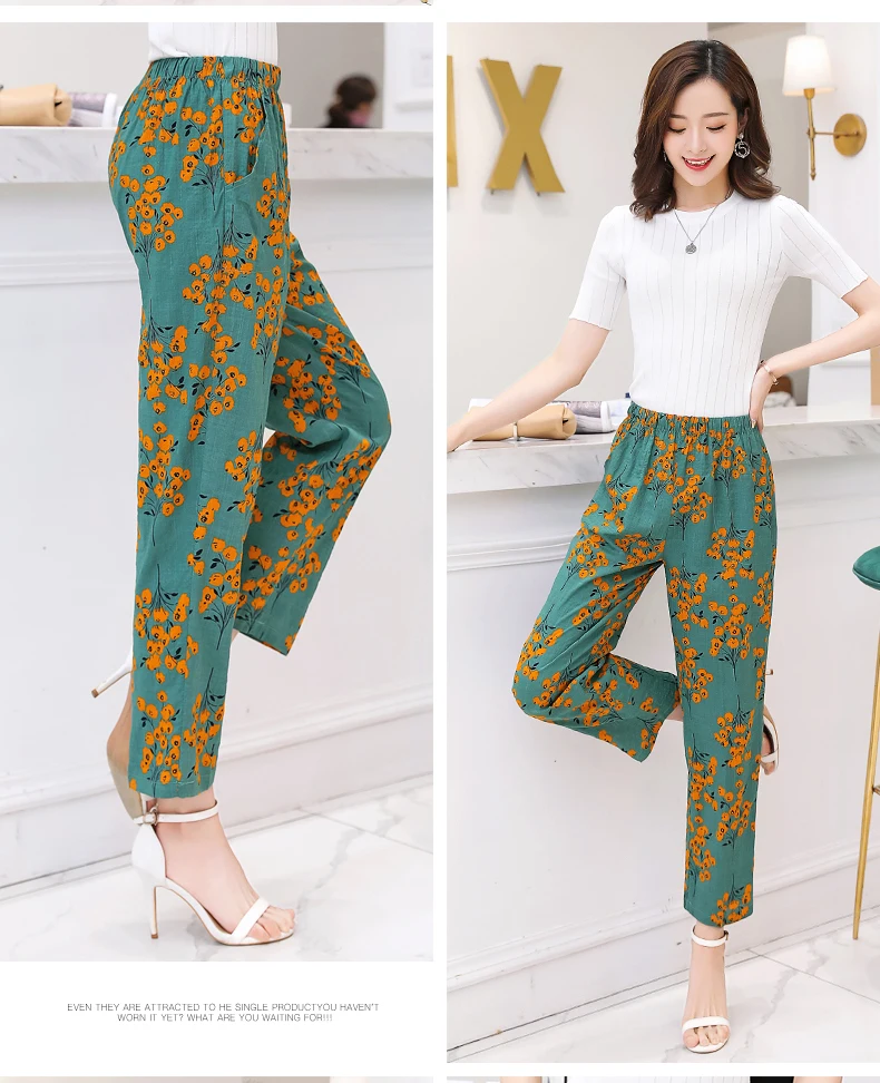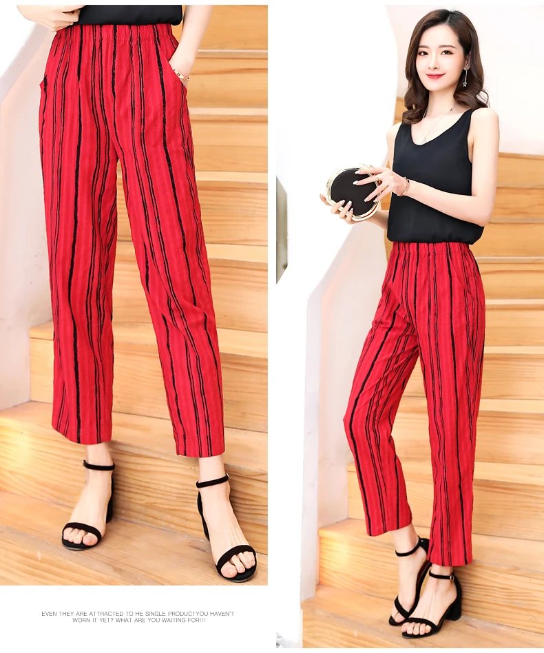 2020 летние женские брюки корейские хлопковые льняные клетчатые брюки с эластичной талией повседневные прямые брюки с высокой талией брюки размера плюс XL-5XL LJ664