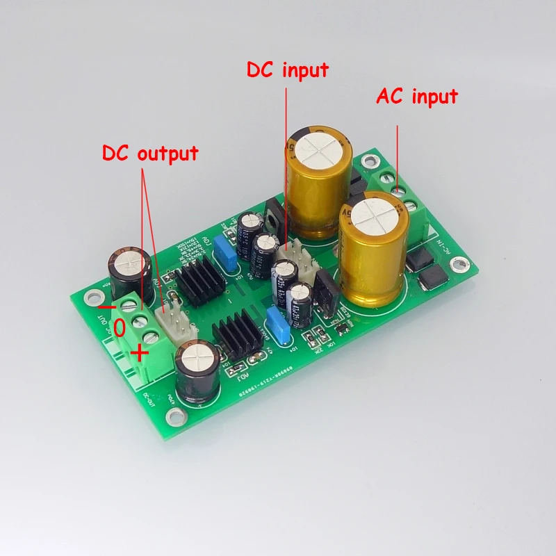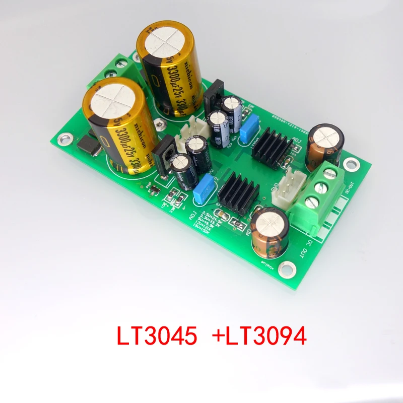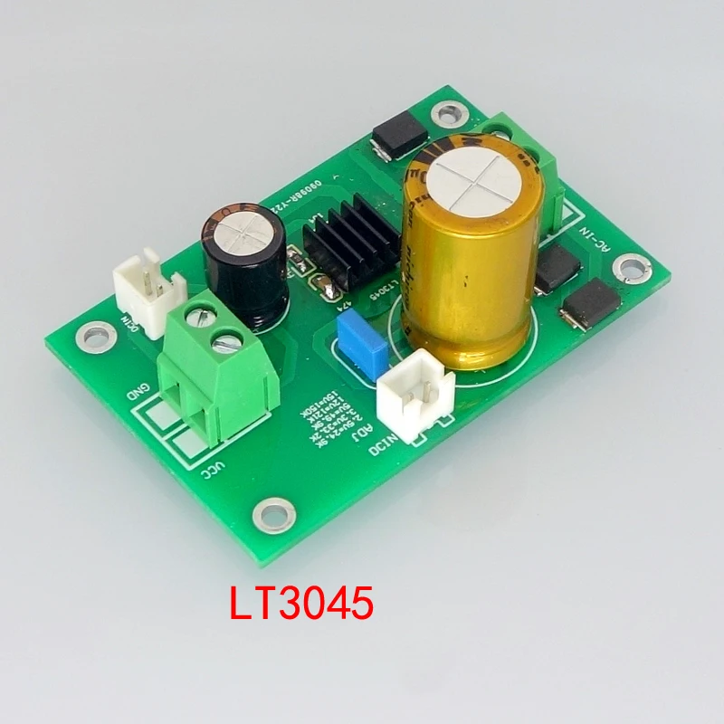Вариант 1: схема вывода положительного давления (LT3045)Допустимый вход переменного или постоянного токаДиапазон входного сигнала переменного тока: A05-AC13 диапазон входного сигнала постоянного тока: Dc5V-D020VВыходной диапазон постоянного тока: DC2.5-DC15VРазмер печатной платы: 66x43ммВариант 2: Положительное давление плюс схема выхода отрицательного давления (LT3045 + LT3049)К передней части добавляется отдельный дискретный электронный фильтр для уменьшения пульсации на выходе и увеличения диапазона входного напряжения.Допускаются входные или прямыеДиапазон входного сигнала переменного тока: AC5Vx2 до AC20Vx2 (AC-0-AC)Диапазон входного сигнала постоянного тока: положительный и отрицательный DC5V к положительному и отрицательному DC28VВыход постоянного тока диапазон: плюс или минус 2,5 V-плюс или минус 15VРазмер печатной платы: 88x46ммСверхнизкой амплитудно-модулируемый Сигнал шум: 0,8 μVRMS (10 Гц до 100 кГц)Ультра низкий уровень шума: 2nV/√Hz (при 10 кГц)Сверхвысокий PSR: 76 дБ (при 1 МГц)Выходной ток: 500 мАОдин конденсатор улучшает шум и PSRНапряжение, требуемое клиентом, чтобы оставить сообщение. Например, 5 В или +- 15 вЭтот продукт может обеспечить Регулируемый источник питания постоянного тока, близкий к 0 шуму, который может быть высокоточным измерительным прибором, аудио декодером, преусилителемAmp и другое оборудование обеспечивают чистую мощность, ядро использует линейную технологию LT high-end линейный регулятор чип LT3045, LT3094, шумИндекс ниже, чем LT3042, и напряжение шума такое же низкое, как 1u, что на 2-3 уровня ниже, чем шум регулирования, такой как LM317LM337.Эффект очень хороший, что позволяет аудиоустройству достичь темного фона. Выходной ток составляет 500 мА, что достаточно для общих чипов DAC и op amps. Например, ток 0PA260 4 op amp составляет 10 мА.Посылка включает в себя: