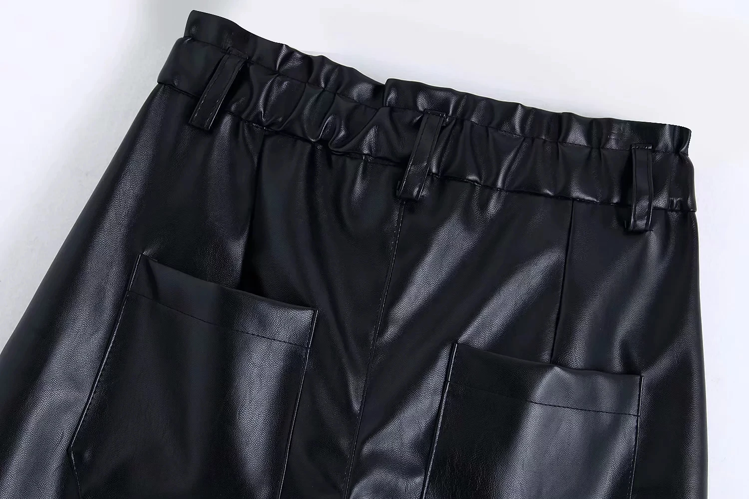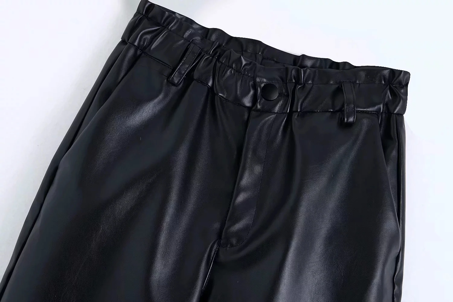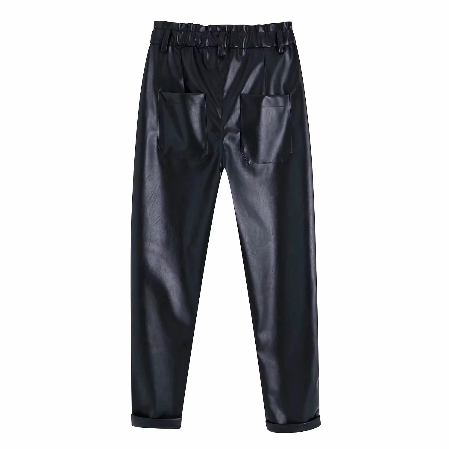 Эластичные женские брюки из искусственной кожи с высокой талией, новые женские ветрозащитные свободные зимние капри из искусственной кожи za, спортивные брюки