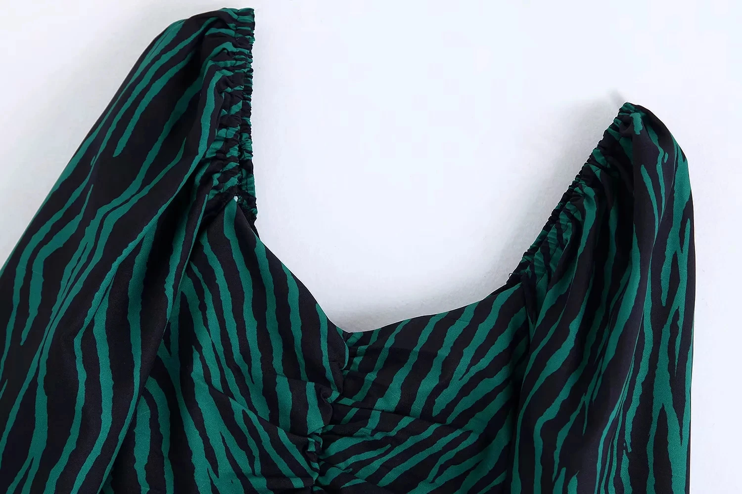 Женское винтажное платье с рукавом три четверти, с квадратным вырезом и высокой талией, вечерние платья зеленого цвета с каскадными оборками, zora