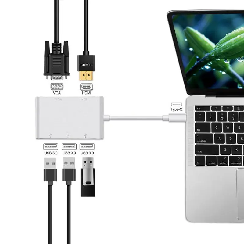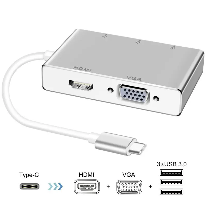 5-в-1 многофункциональные подключи и работай без необходимости драйвера: несколько портов дизайн с 1x USB-C вход, 1x HDMI выход и 1x VGA выход. Разрешение HDMI до 3840x2160 @ 30 Гц, разрешение VGA до 1920x1200 @ 60 Гц Поддержка HDMI 4K x 2K(3840x2160) @ 30 Гц, Совместимость с вниз 1080P, 720P; 4K видео высокой четкости опыт более реалистичной красоты.