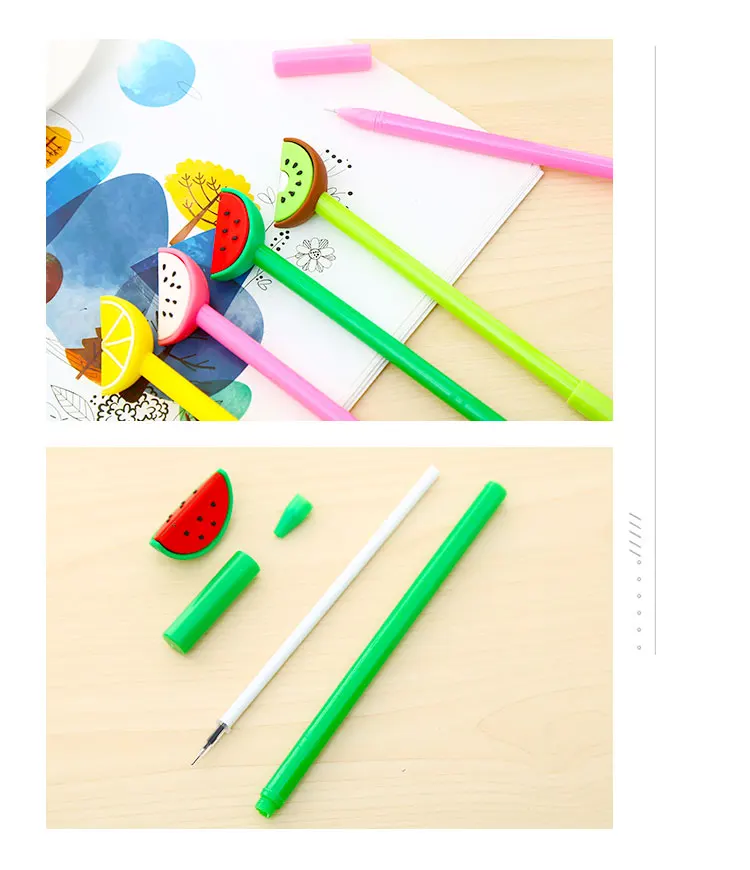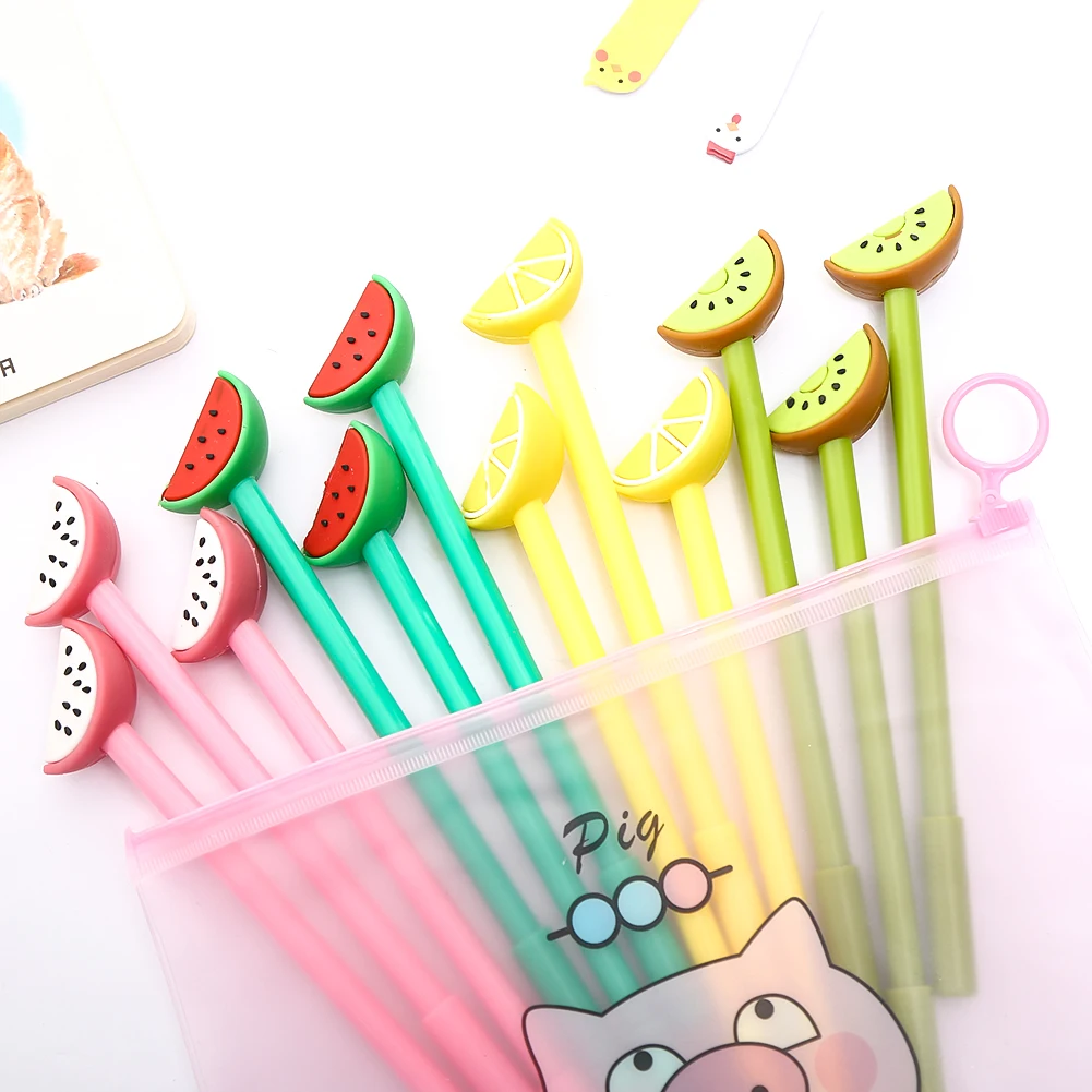12 шт./компл. корейский тонких листов Kawai Новинка Фрукты гелевые ручки классные арбуз Канцелярские магазин офиса школы Материал вещь Карандаш Чехол сумка