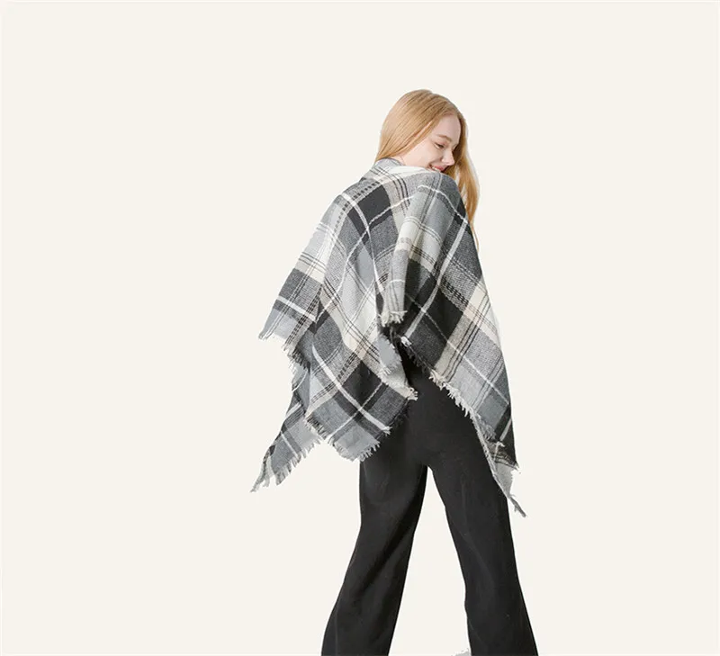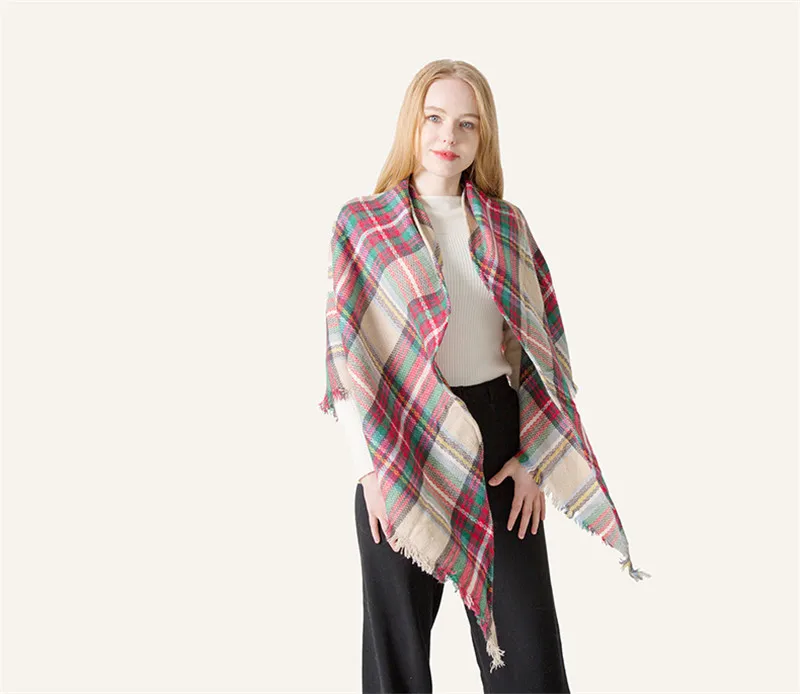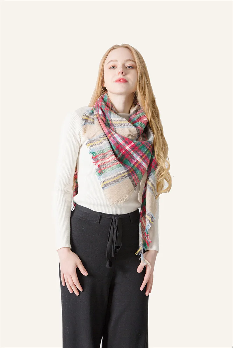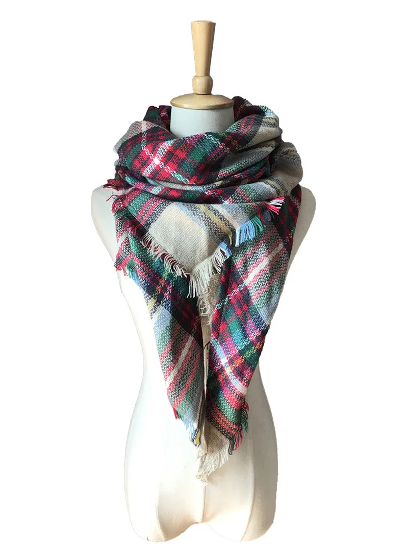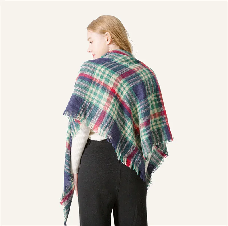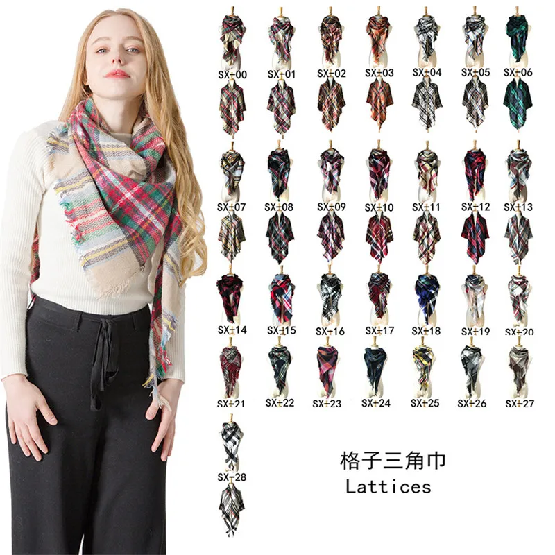 2019 женский зимний треугольный шарф, клетчатый теплый кашемировый шарф, женский шарф, шали, пашмины, женские шали