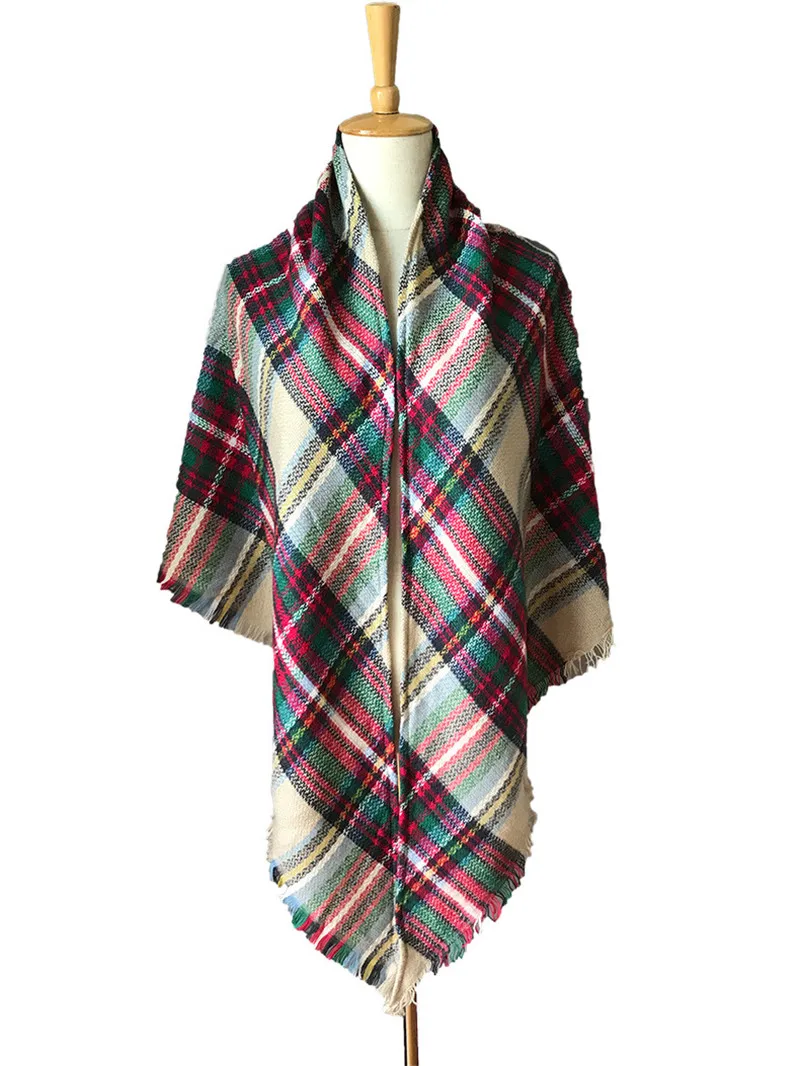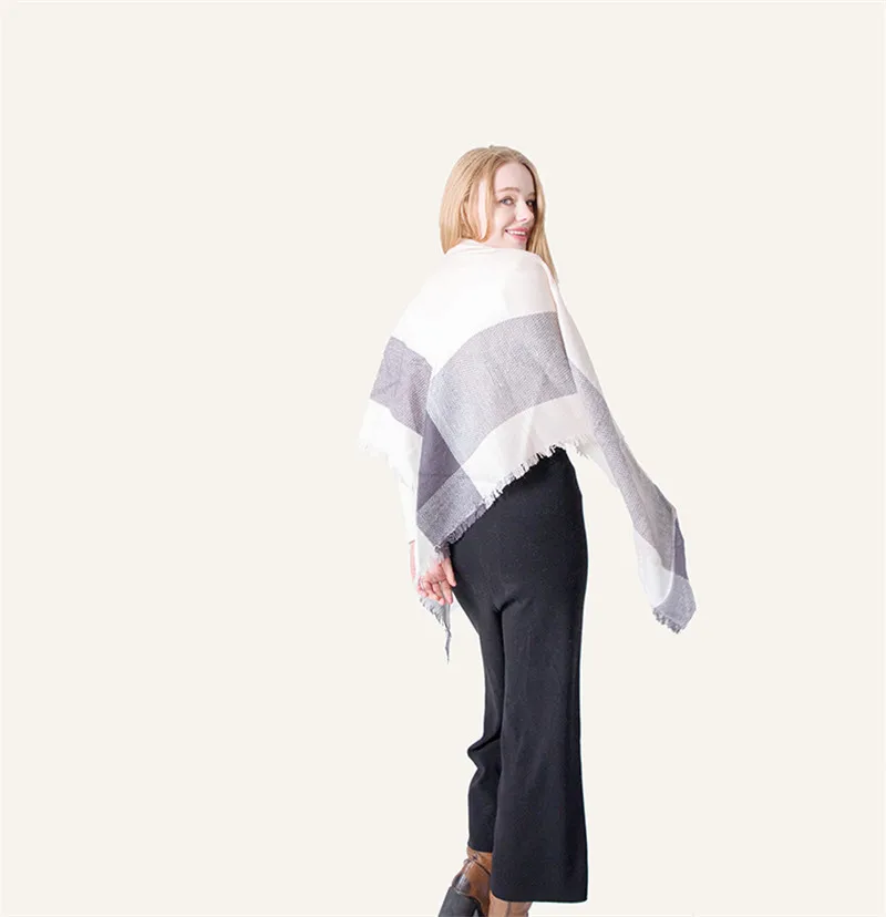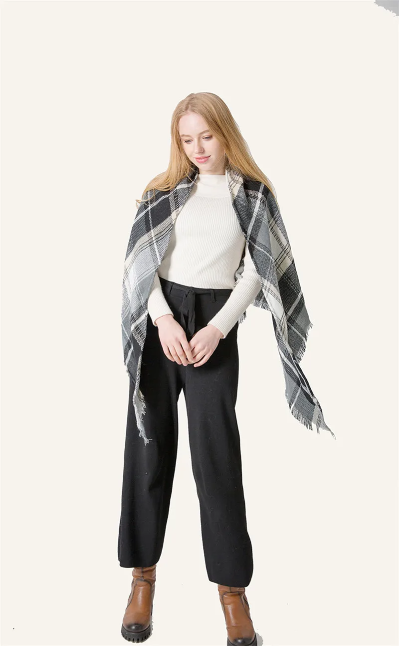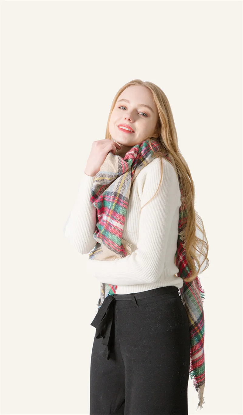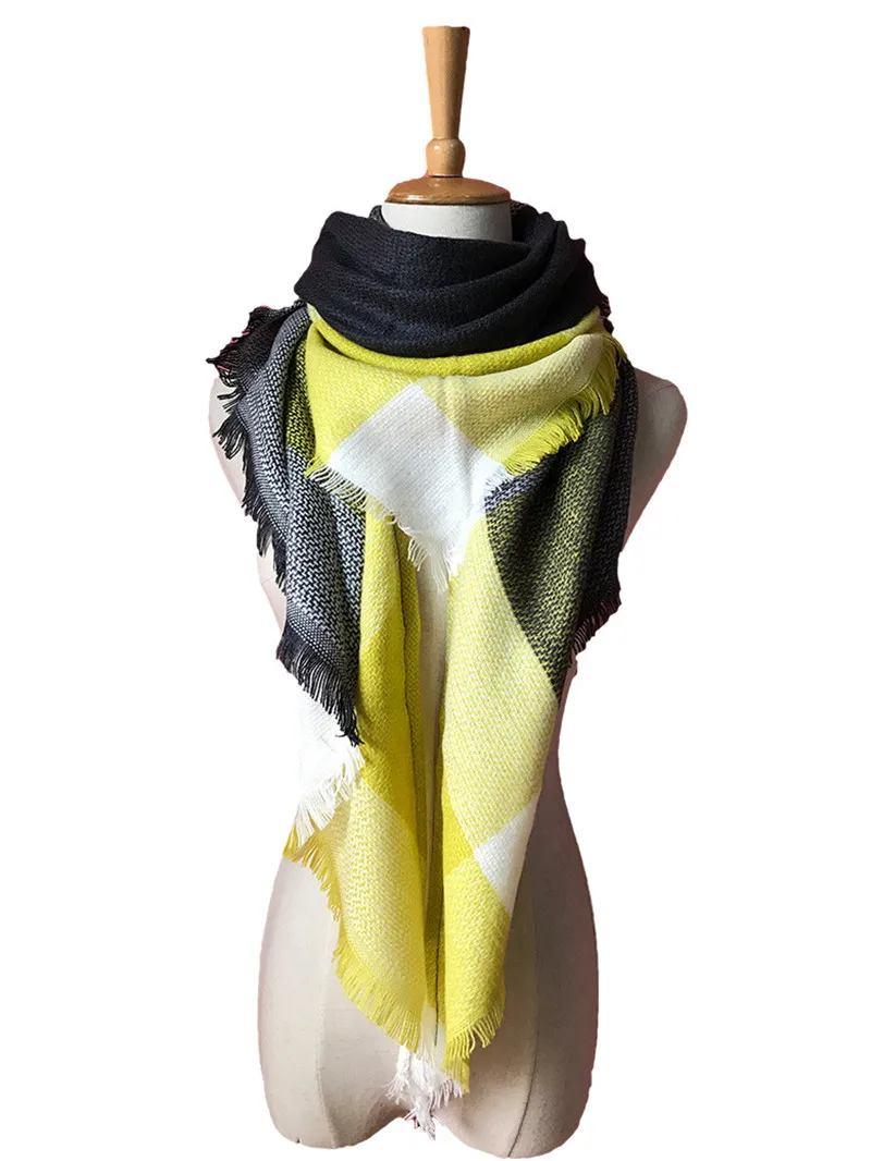 2019 женский зимний треугольный шарф, клетчатый теплый кашемировый шарф, женский шарф, шали, пашмины, женские шали