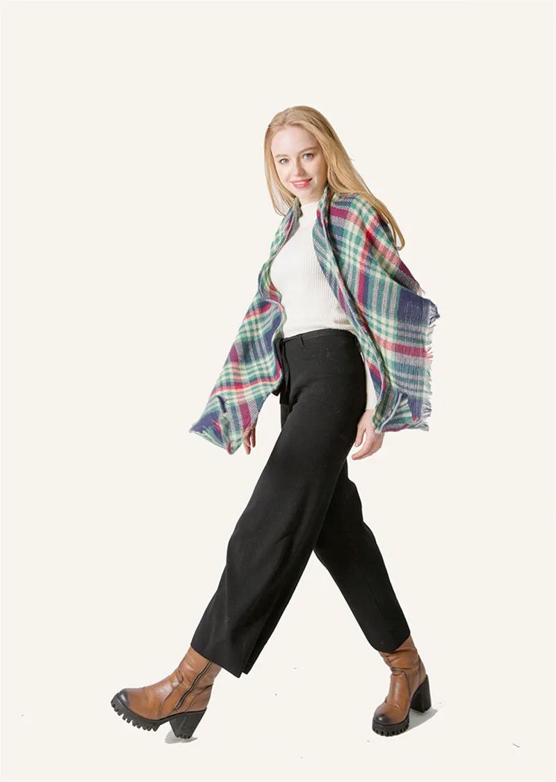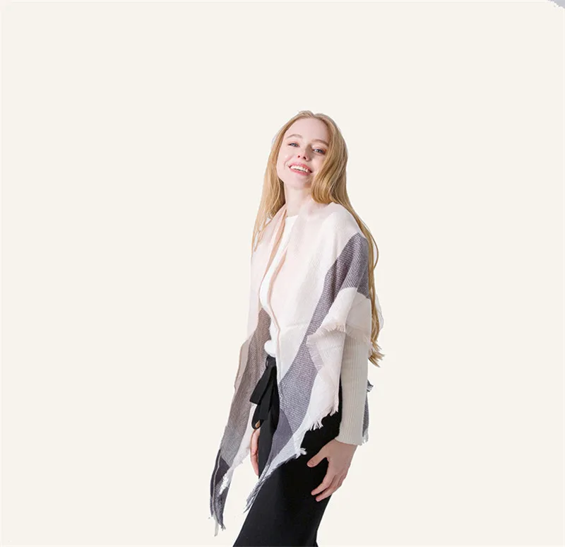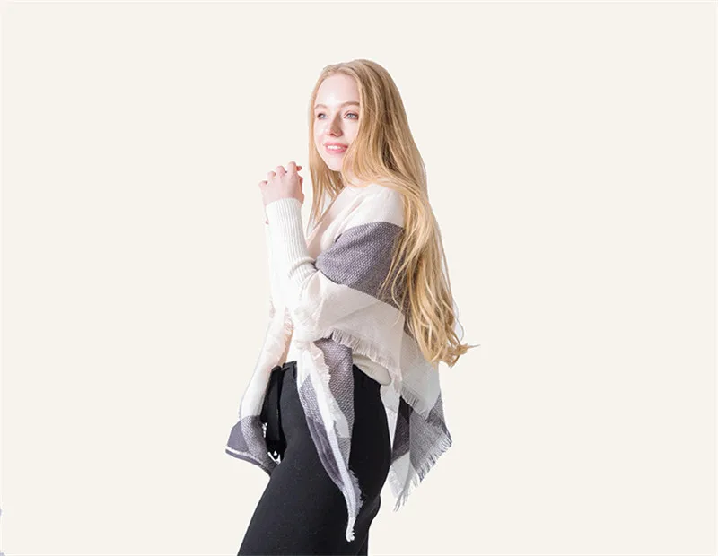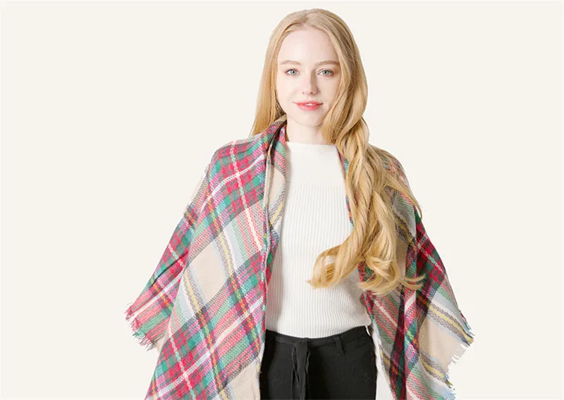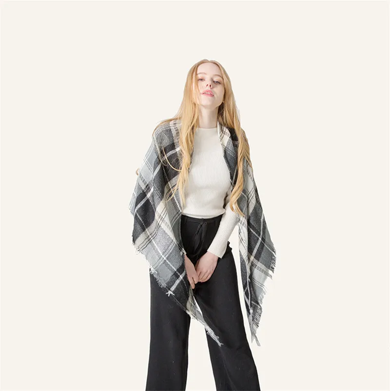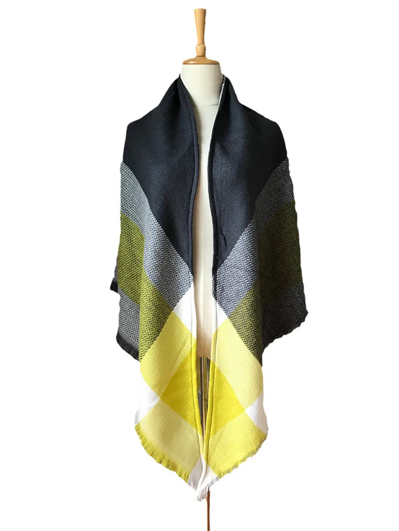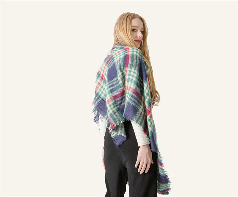2019 женский зимний треугольный шарф, клетчатый теплый кашемировый шарф, женский шарф, шали, пашмины, женские шали