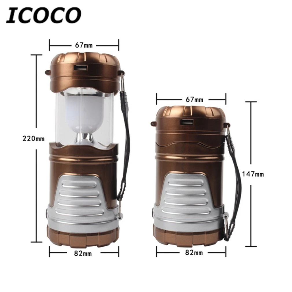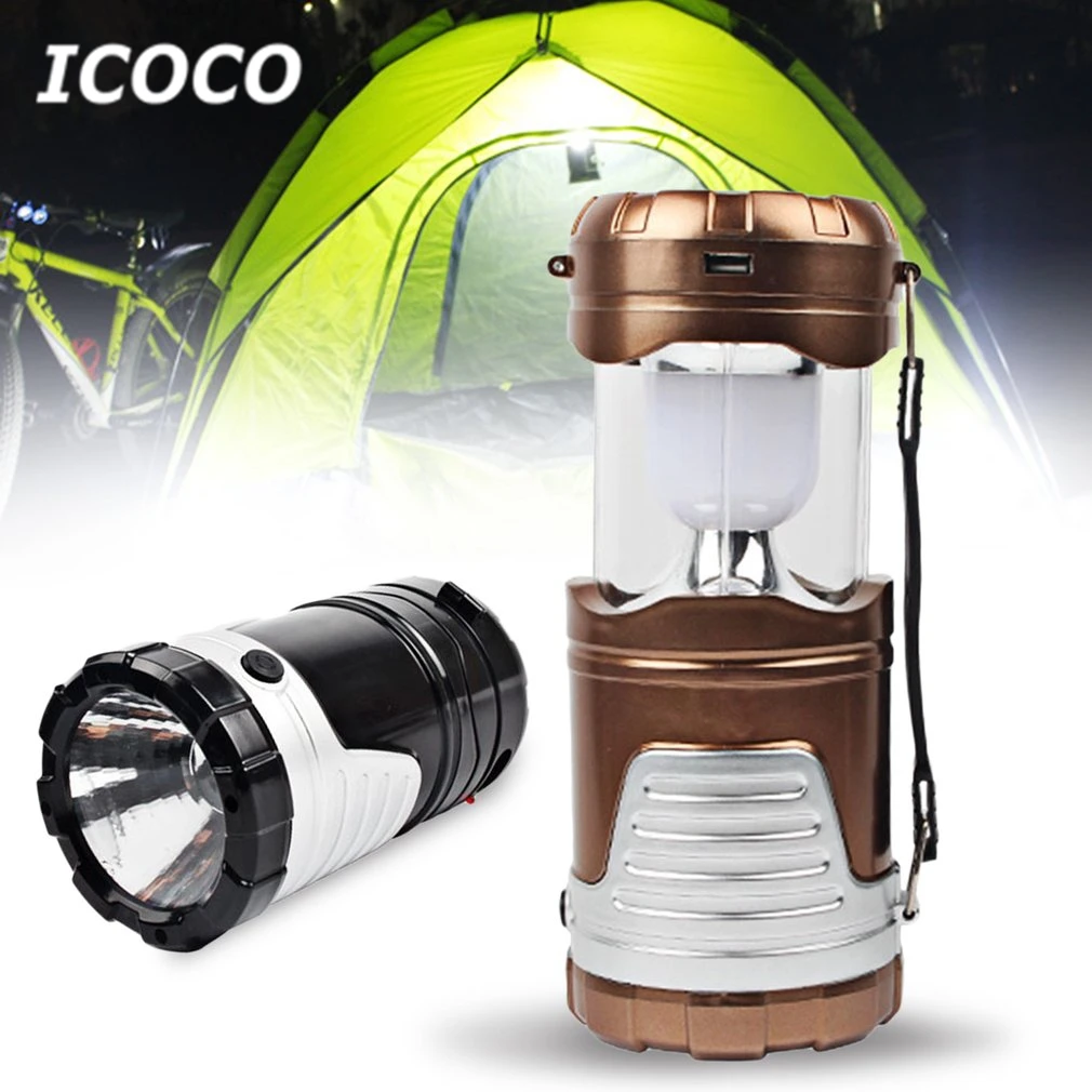 ICOCO Солнечный кемпинг светильник светодиодный перезаряжаемый ручной светильник Палатка Фонарь светильник USB порт зарядка для мобильного телефона для пешего туризма продажа