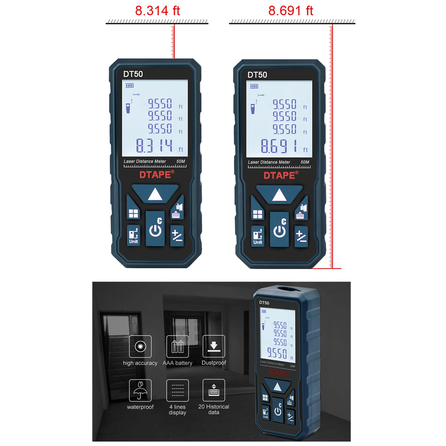 Хотите профессиональный лазерный дальномер с более высокой точностью? Попробуйте этот мини лазерный дальномер. Он может измерять расстояние, площадь и объем. Он также используется для непрямого измерения по теореме Пифагора. Простой в эксплуатации, точный в измерении, подходящий размер для вашей ладони, супер светильник для удобной переноски.