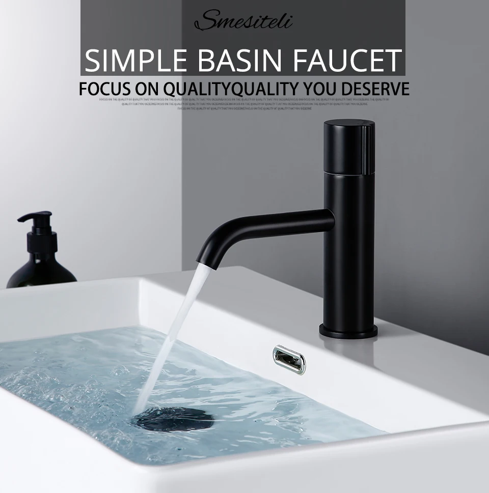 Смеситель для раковины Smesiteli, черный, розовое золото, латунь, с одним отверстием, домашний смеситель для горячей и холодной раковины, кухонный смеситель для ванной комнаты