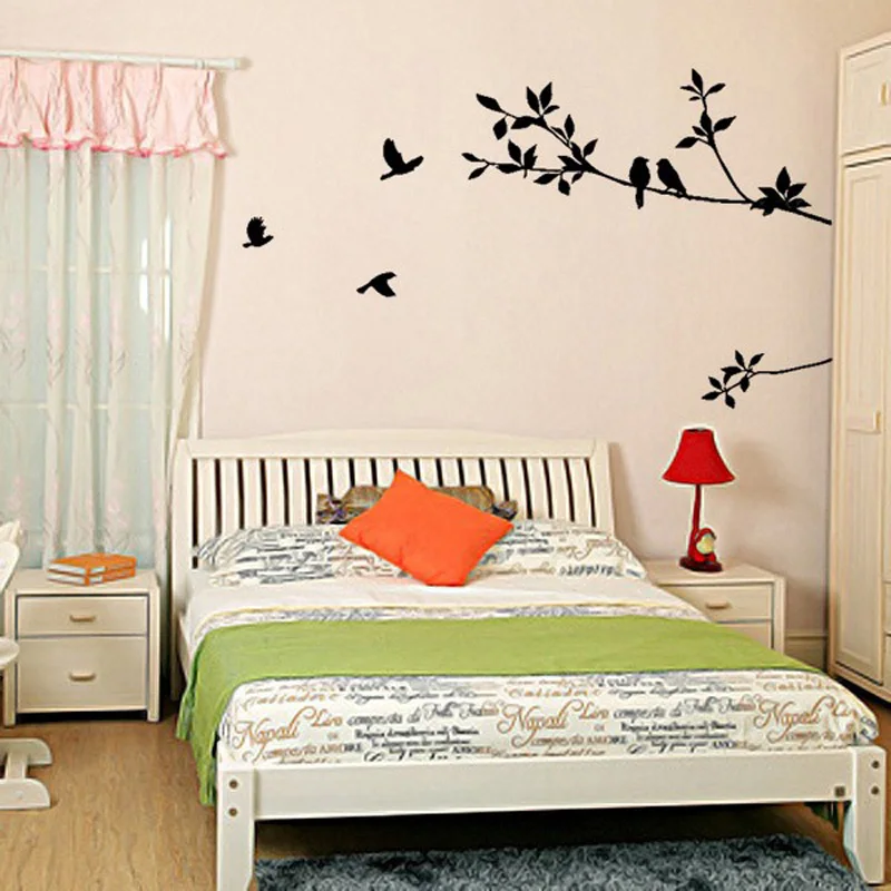 1X Ветка дерева черная птица художественные наклейки на стену Съемная Виниловая наклейка для дома(Без розничной коробки. Безопасно упаковывается в пузырчатую сумку)