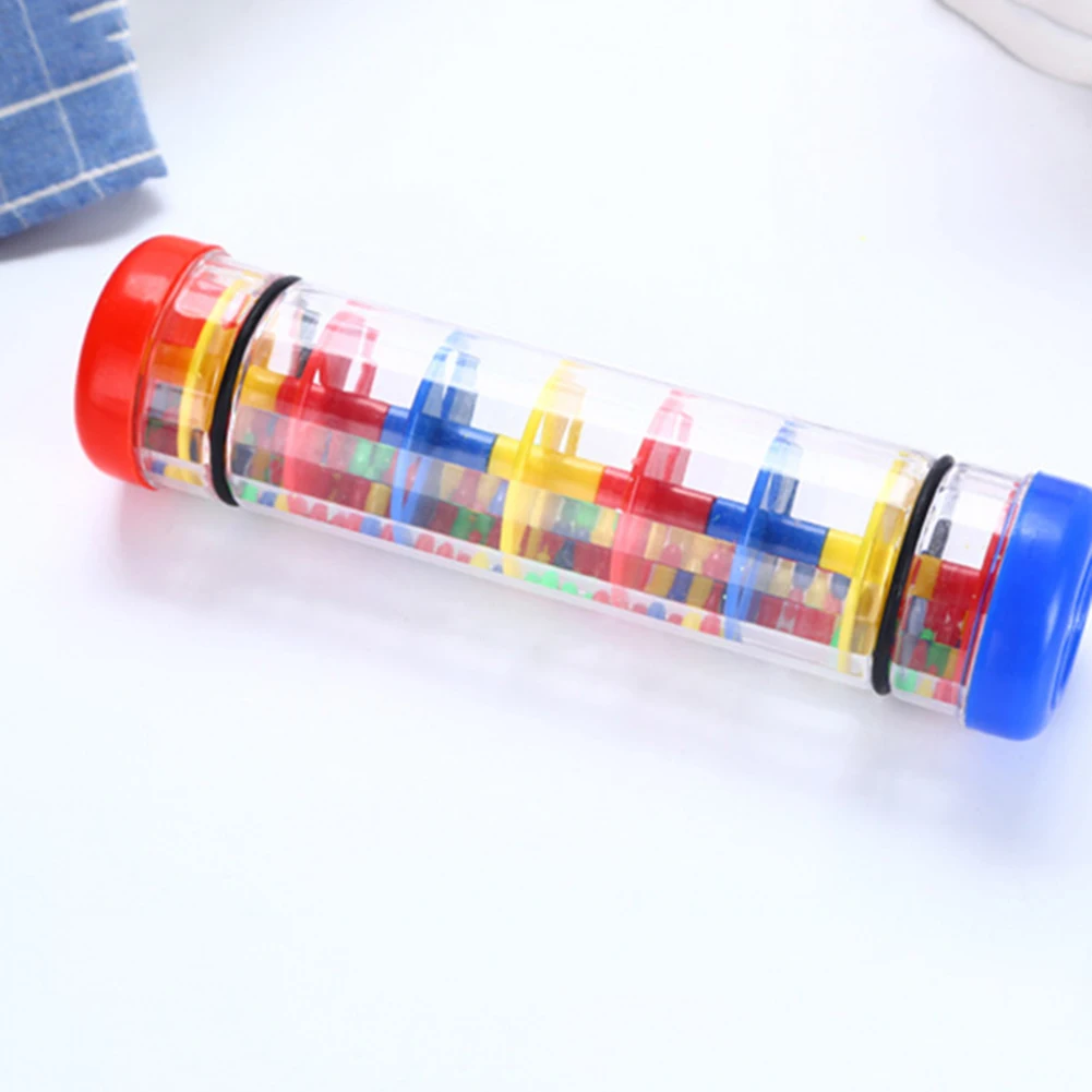 Просто переверните этот красочный пластиковый дождевик и красочные бусины вниз по пластиковой трубке, создавая звук дождя.