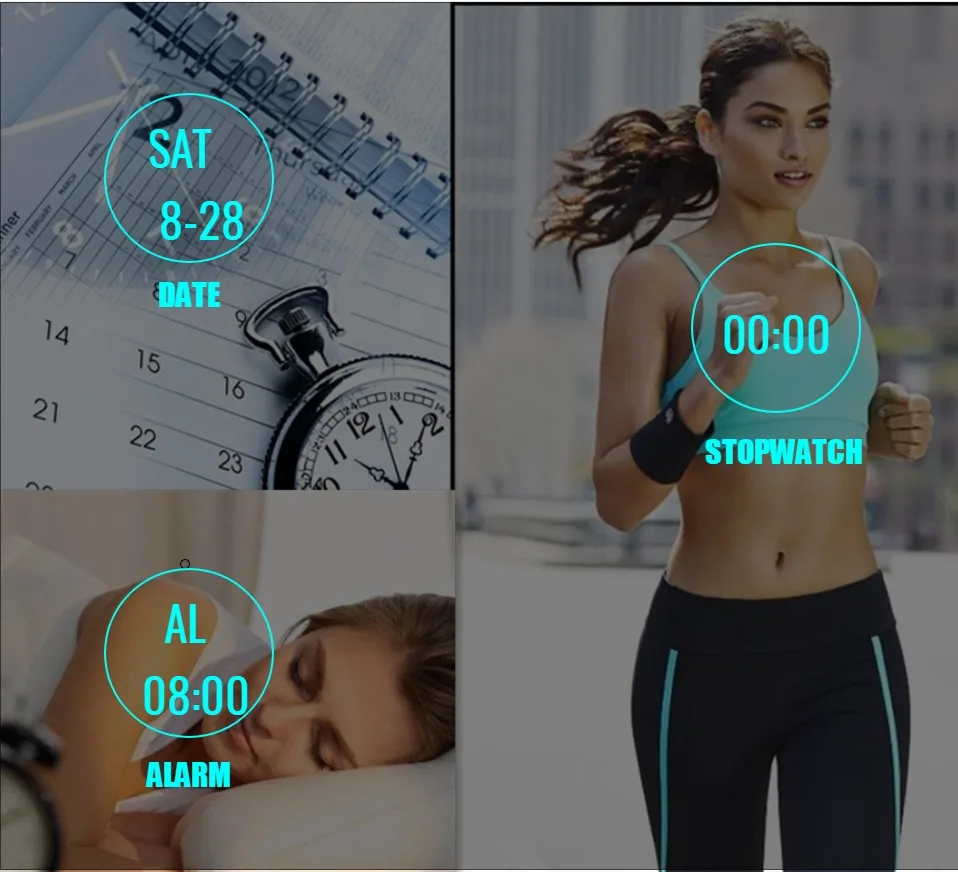Цифровой: часы, минуты, секунды, pm, месяц, дата, день
