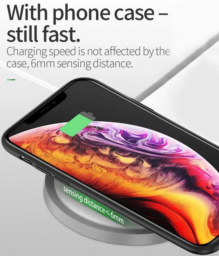 Используя Беспроводное зарядное устройство, вы можете заряжать мобильный телефон толщиной менее 3 мм, не снимая красивую крышку телефона.