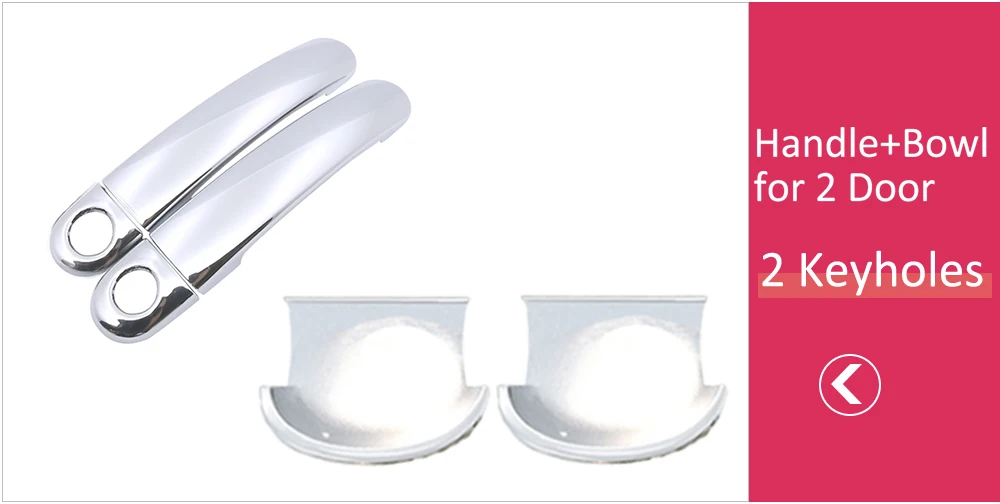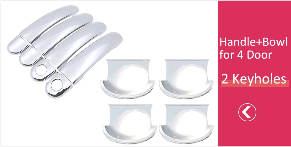 Сделайте свой автомобиль выделиться из толпы с помощью этих 4 высококачественных стильных хромированные покрытия для дверных ручек! Высококачественный пластик придает этим чехлам глубокий и глянцевый хромированный блеск! Они специально разработаны для вышеперечисленных моделей и идеально подходят! Они оснащены высокой прочности лента 3M клейкого материала на задней части, просто снимите пленку с подкладкой и нанесите! Занимает несколько секунд, никаких инструментов не требуется! Это действительно придаст вашему автомобилю крутой новый вид!