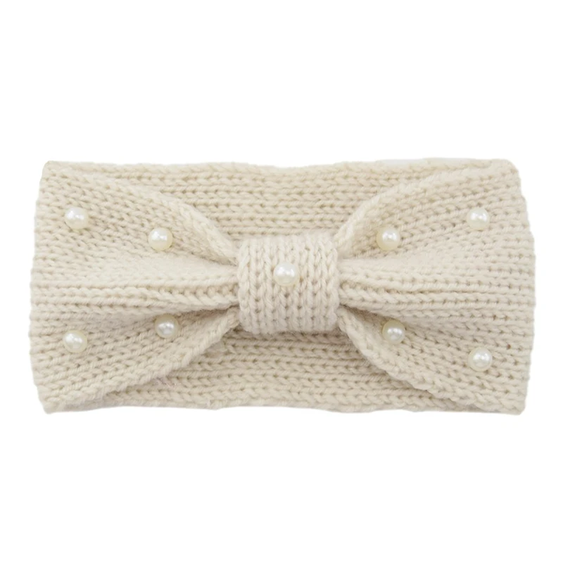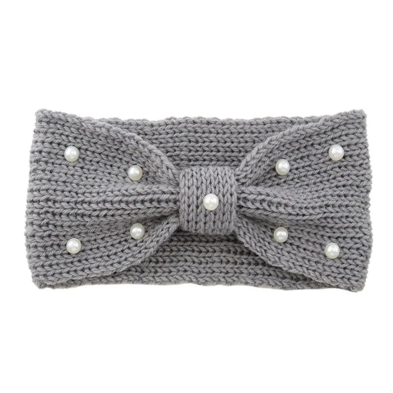 Бантик жемчужный вязаный крючком Широкий головной убор зимний теплый ободок для ушей мягкий тюрбан