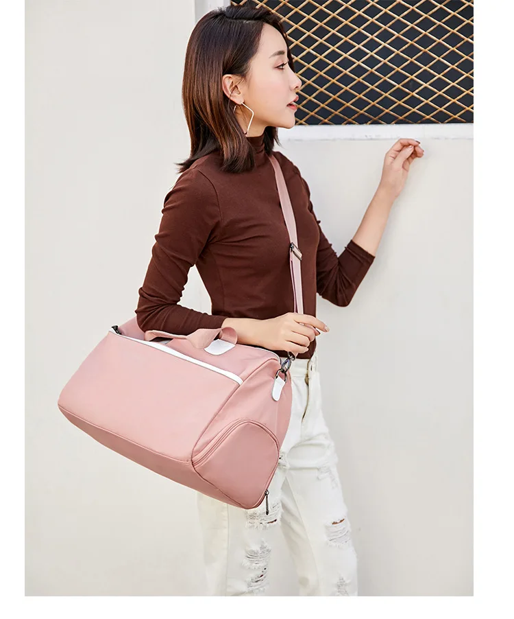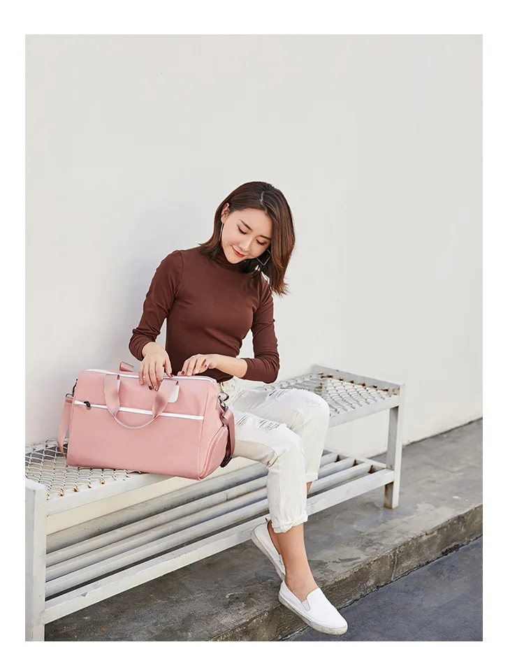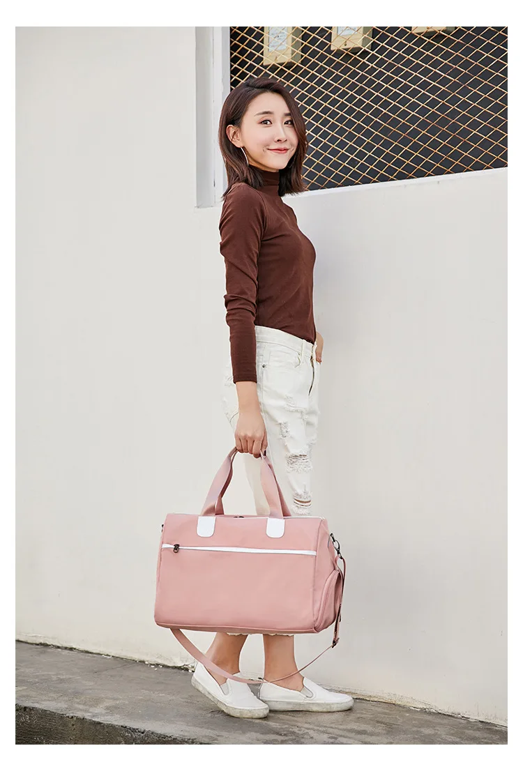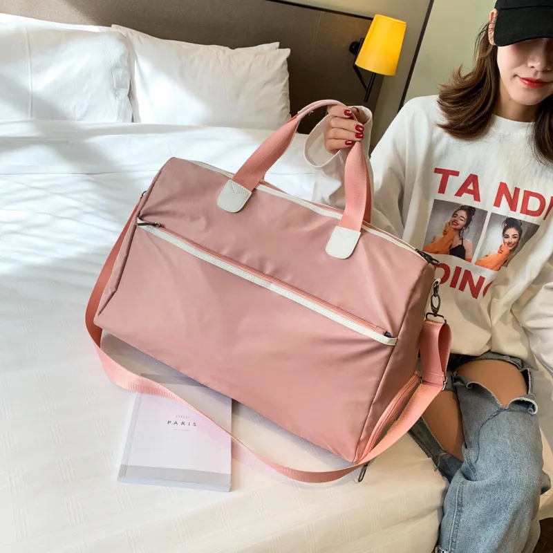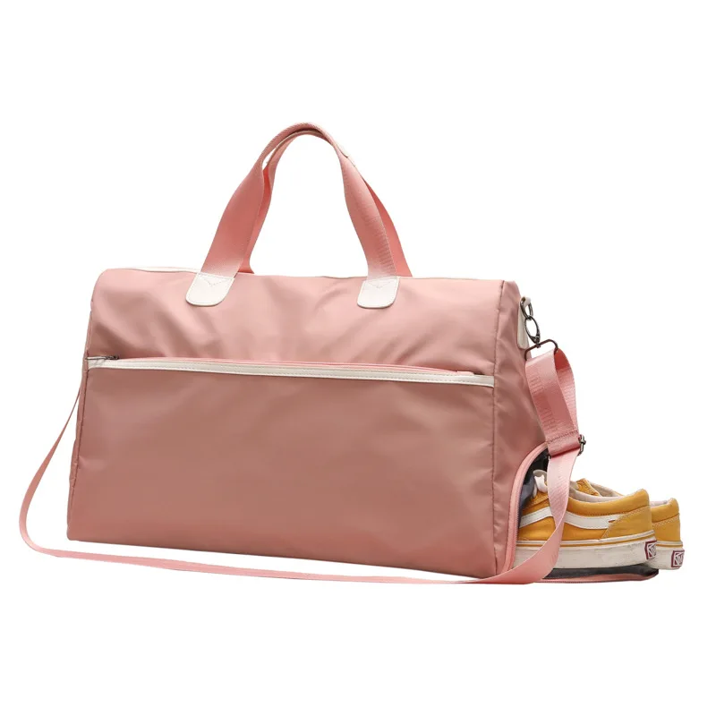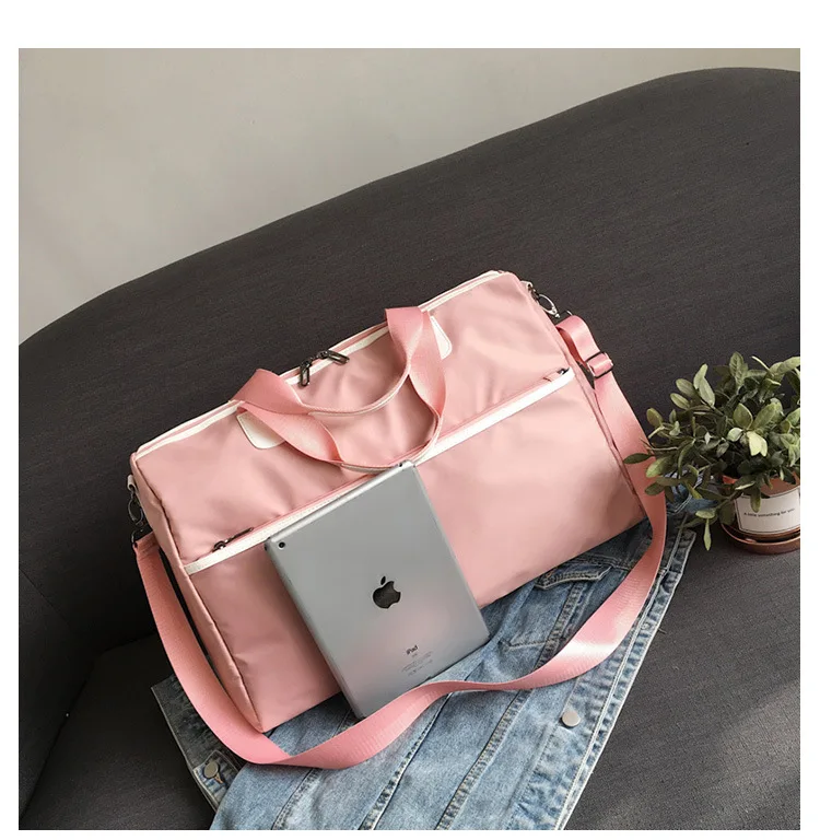 Корейская нейлоновая сумка для ручной клади, розовая, большая емкость, для сухой влажной зоны, дорожные сумки с карманом для обуви, мужская спортивная сумка для сна