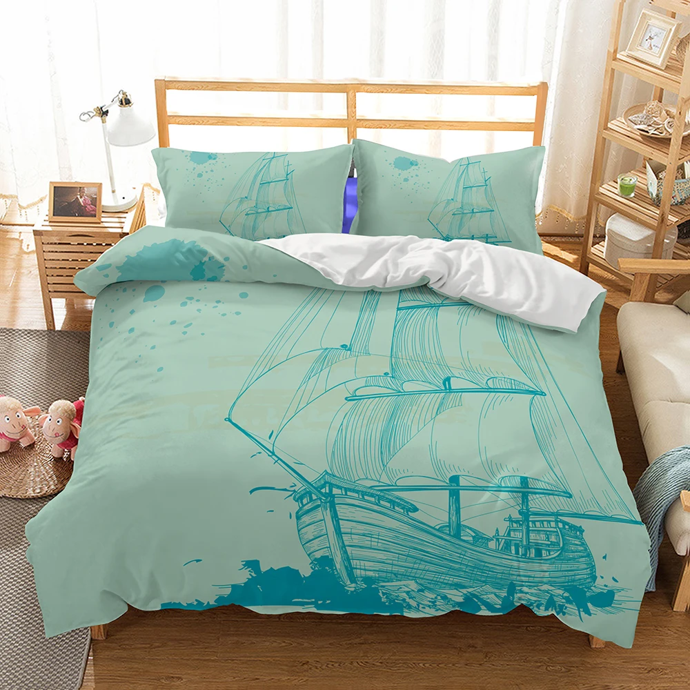 Винтажный парусник пододеяльник домашний рисованный эскиз Комплект постельного белья для подростков постельные комплекты одинарное двойное одеяло набор подушек зеленое покрывало