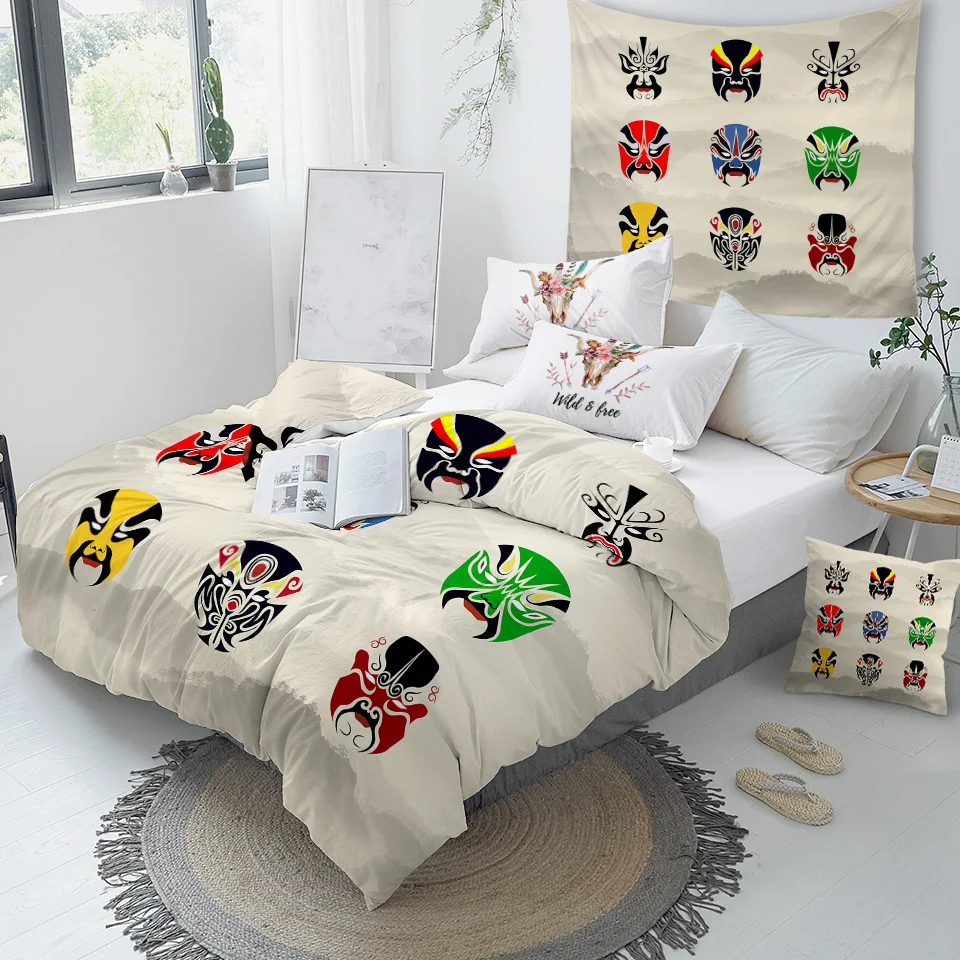 Особенности:Красочные Пекинские оперные маски древних людей на фоне гор, полные культуры очарования.