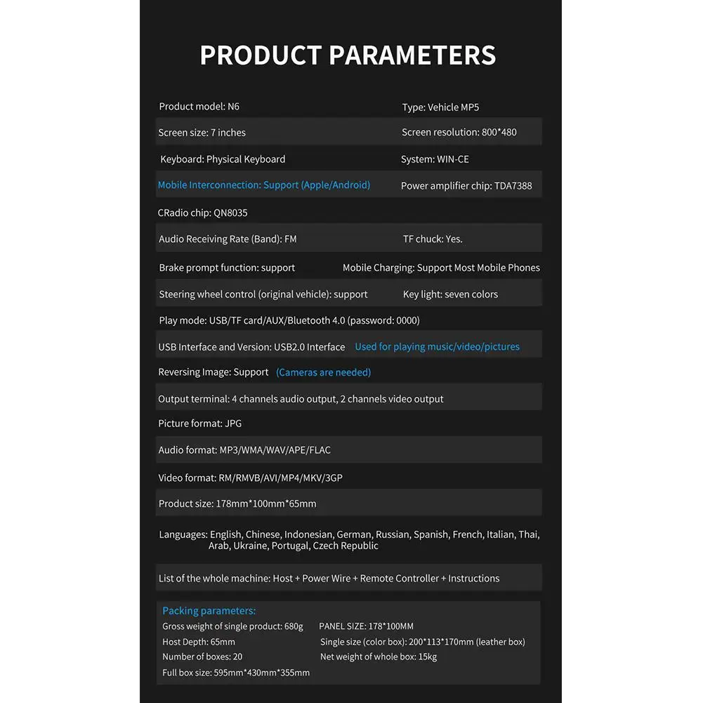 Поддерживаемый Формат аудио: MP3/WMA/WAV/APE/FLAC