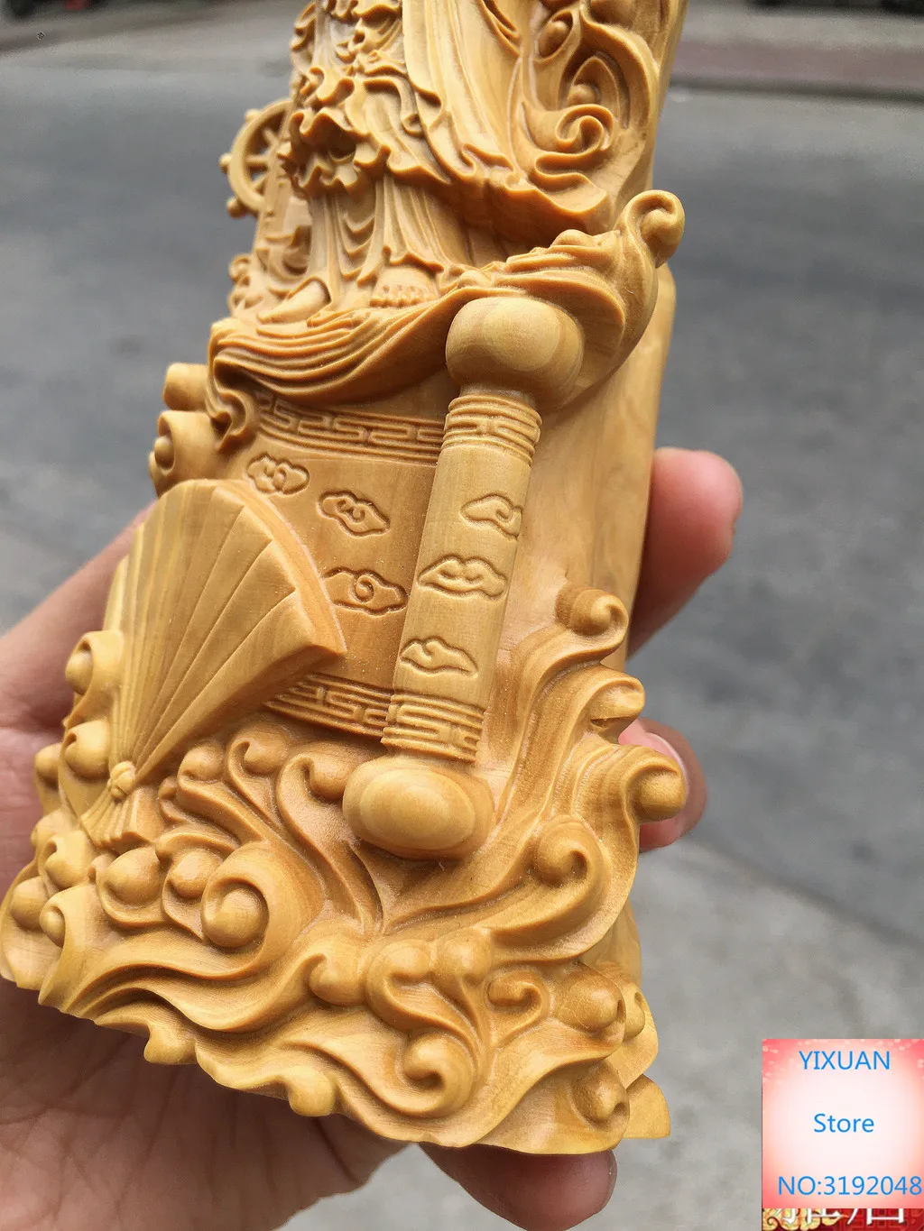 Новый небольшой лист boxwood свиток Ruyi Guanyin Bodhisattva твердая резьба по дереву ручной работы Fengshui орнамент