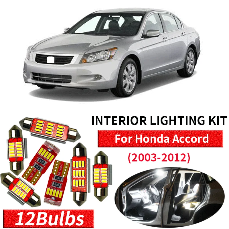 Этот список представляет собой белый набор из 12 предметов для внутренней посылка для Honda Accord 2003-2012 Наш Светодиодный Светильник изготовлен из более ярких чипов премиум класса 5630 SMD, которые имеют более длительный срок службы по сравнению с другими.
