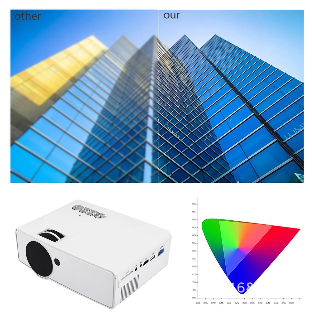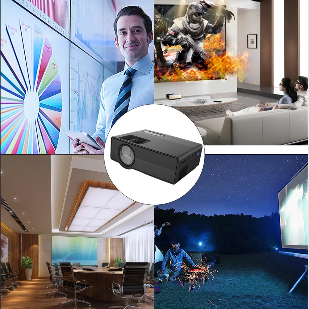 Этот мини-ЖК-проектор удобно носить с собой с легким и портативным дизайном. Мульти выбор входов: HDMI, VGA, USB, AV, SD Защита окружающей среды: до 20000 часов работы светодиодный фонарь и низкое энергопотребление. Может быть подключен к большинству устройств, таких как MP3, смартфон, ноутбук, USB flash, DVD, DV видеокамера и т. Д. Это хороший выбор для домашнего кинотеатра, а также отличный игрушечный проектор для игр и обучения детей. Колонки встроенный проектор, нет необходимости подключаться к любым дополнительным колонкам