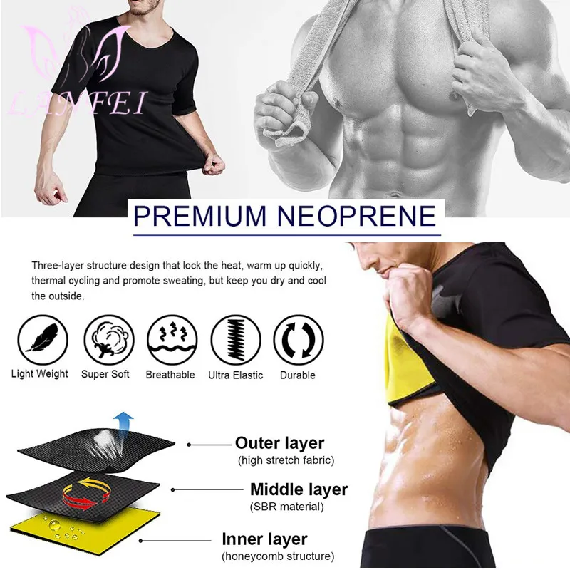 1. отличная Ткань: 80% неопрен + 20% нейлон, спортивные рубашки для тренировок из неопренового материала идеально подходят для похудения, Неопреновая ткань позволит вам больше потеть и сжигать лишний животик жира и стройное тело, как корсет для тренировки талии. Подходит для длинного торса или короткий торс. Как компрессионная футболка.