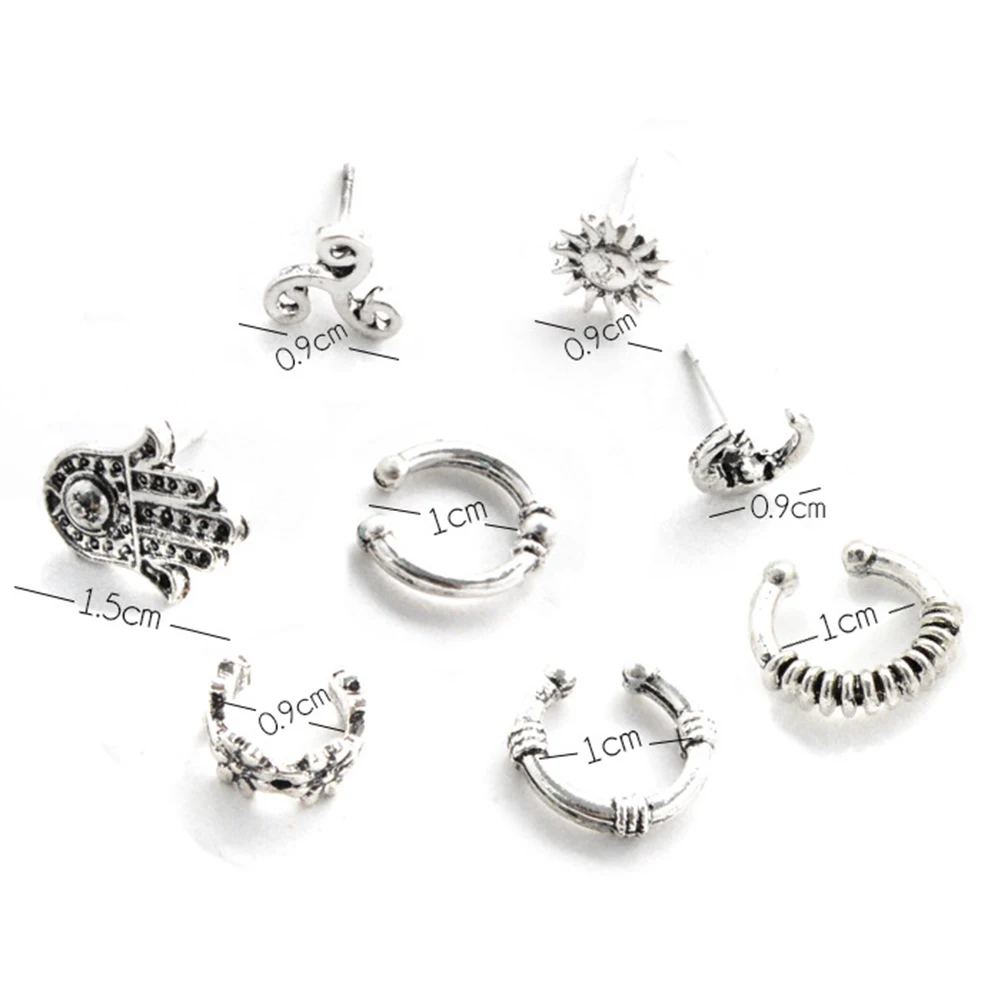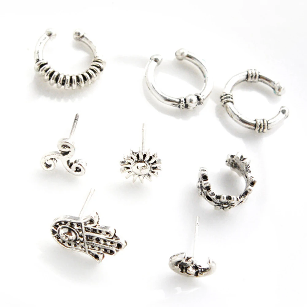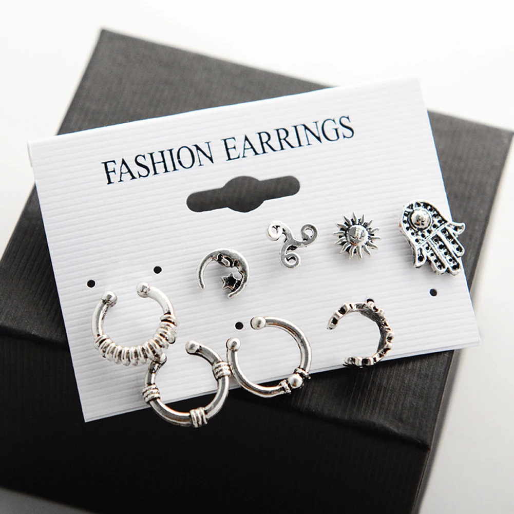 Популярные Модные богемные серьги-гвоздики, Женские Геометрические серьги, Винтажные серьги в форме солнца, Луны, клипсы для ушей, Индивидуальные ювелирные изделия для пирсинга