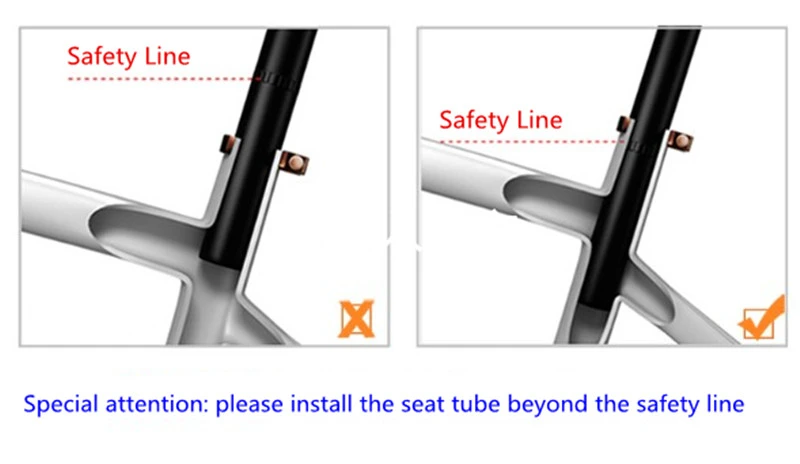Регулируемый:Этот продукт прост в установке и удалении. На подседельный штырь есть знак безопасности. При установке нового Подседельный штырь вставьте как минимум выше минимальной линии безопасности.