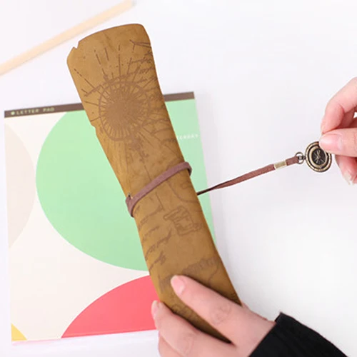 Ретро Пиратская Карта сокровищ рулон из искусственной кожи Ручка Карандаш Чехол Сумки Макияж держатель