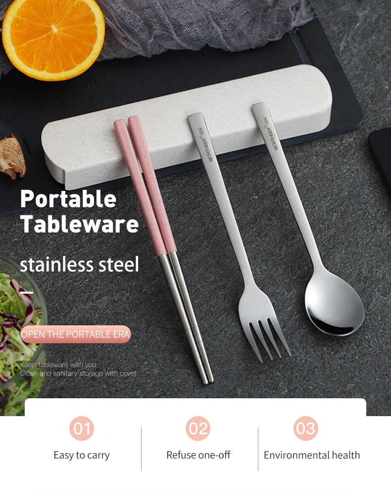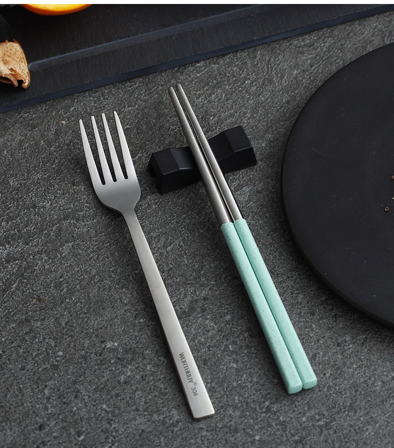 WORTHBUY портативная дорожная посуда, набор посуды из нержавеющей стали 304 палочки для еды Ложка Вилка для обеда набор столовых приборов для пикника