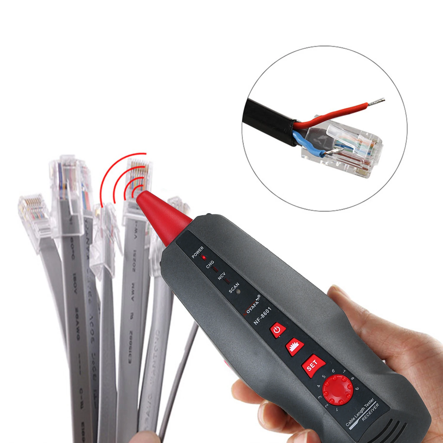 Этот тестер является многофункциональным проводным трекером, включая кабельный излучатель и приемник. Он имеет такие функции, как отслеживание телефонного провода, отслеживание сетевого провода, отслеживание кабеля питания, проверка сетевого провода и т. д. и производит быстрые и точные измерения. Это необходимый инструмент для тестирования телекоммуникационной инженерии, электропроводки и обслуживания сети.