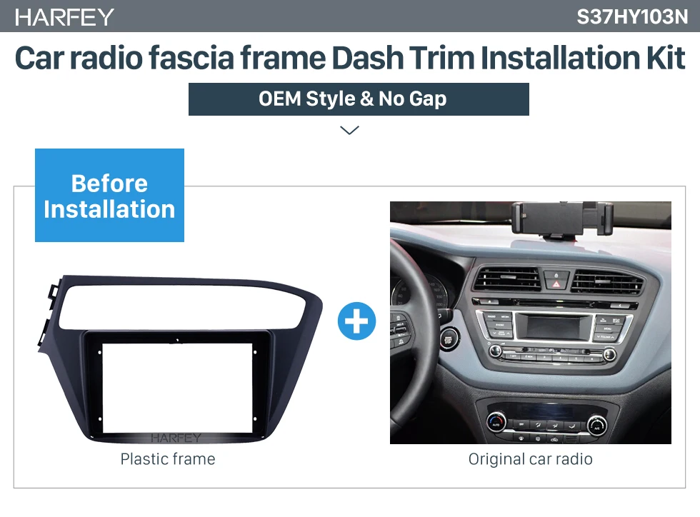 Harfey 9 дюймов фасции панель установить тире ободок отделка комплект крепленияДля 2018 HYUNDAI i20 LHDOEM Стиль без зазора 2 din