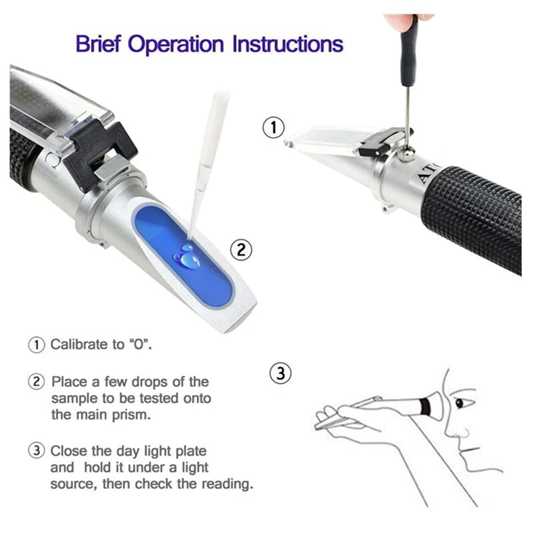 Он оснащен автоматической температурной компенсацией (ATC), так что фрактометр автоматически настраивается для коррекции температурных различий температуры окружающей среды.
