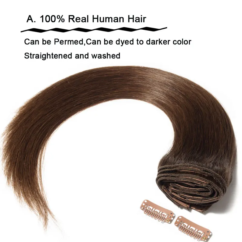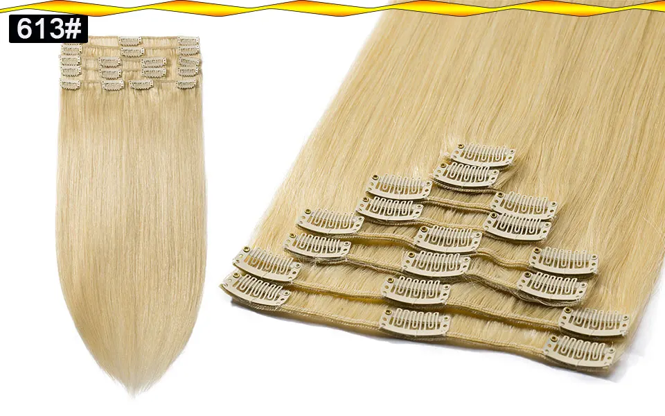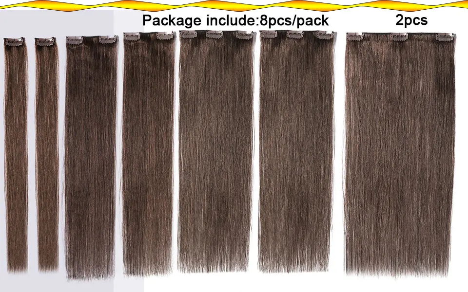 8 штук в комплекте! Длиной 20 см x 2 шт. 15 см в длину x 2 шт. 10 см x 2 шт. 5 см х 2 шт. Размер, вес и количество: 10 дюймов = 25 см в длину, общий вес 70 грамм/комплект 12 дюймов = 30 см в длину, общий вес 75 грамм/комплект 14 дюймов = 35 см в длину, общий вес 80 грамм/комплект 16 дюймов = 40 см в длину, общий вес 90 грамм/комплект 18 дюймов = 45 см в длину, общий вес 100 грамм/комплект 20 дюймов = 50 см в длину, общий вес 105 грамм/комплект 22 дюйма = 55 см в длину, tatal вес 110 г/компл. 24 дюйма = 60 см в длину, tatal вес 120 г/компл. Цвета опции: Темный цвет: 1 # (струйный черный), 1B # (натуральный черный), 2 # (темный коричневый), 4 #6 # Светильник Цвет: 27 # (светильник коричневый), 613 # (светильник блонд), #24 #60 Стиль: прямые накладные человеческие волосы на заколках Качество: 100% натуральные человеческие волосы Можно свернуть Можно красить в более темный цвет!