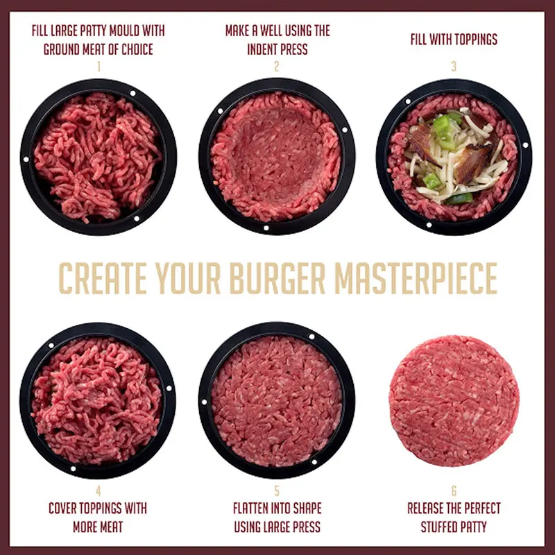 3 in 1 Stuffed Press Meat Patty Hamburger Maker Mold Sliders Non Stick Plastic Meat Pie Mould Kitchen Cooking Tool Black