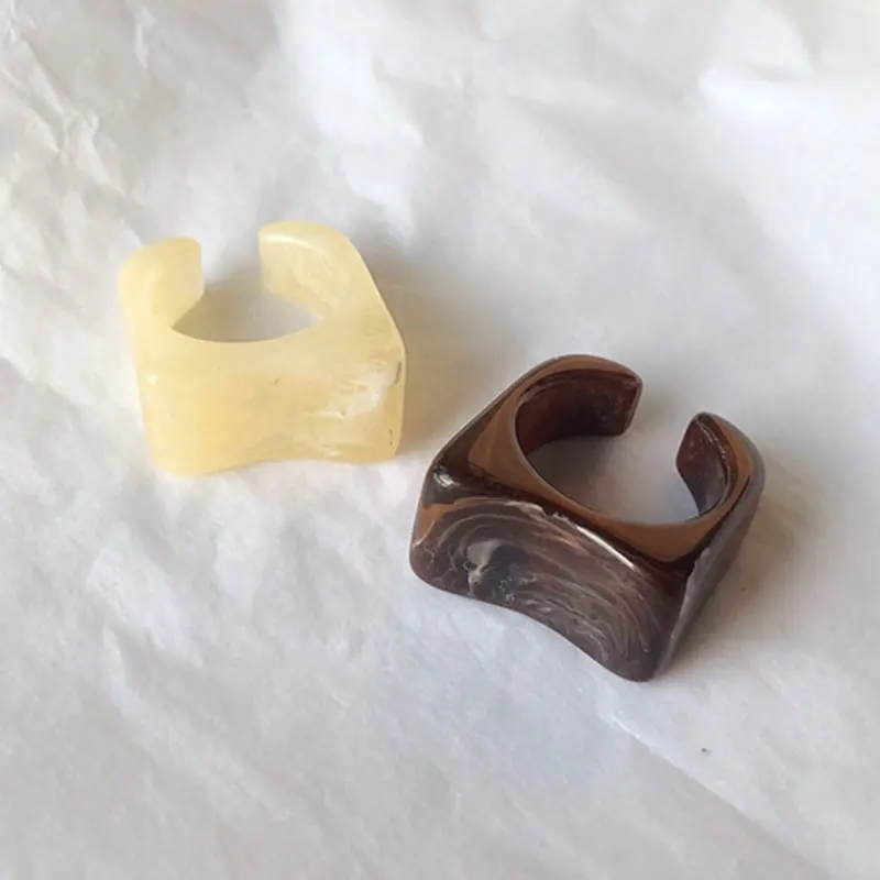 Винтажное модное квадратное кольцо из смолы с крутым ветром, широкие кольца цвета слоновой кости, ювелирные изделия в подарок