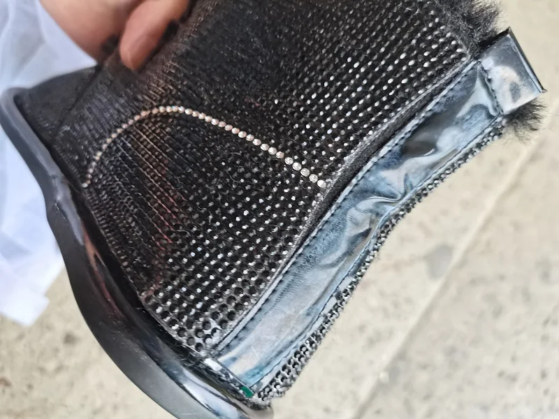 Яркие бриллианты верхней части обуви были разрезаны сбоку, а затем приклеены. Швы обуви открытые. Мы сделали фотографии обуви. Если вас это не устраивает, пожалуйста, внимательно разместите свой заказ.