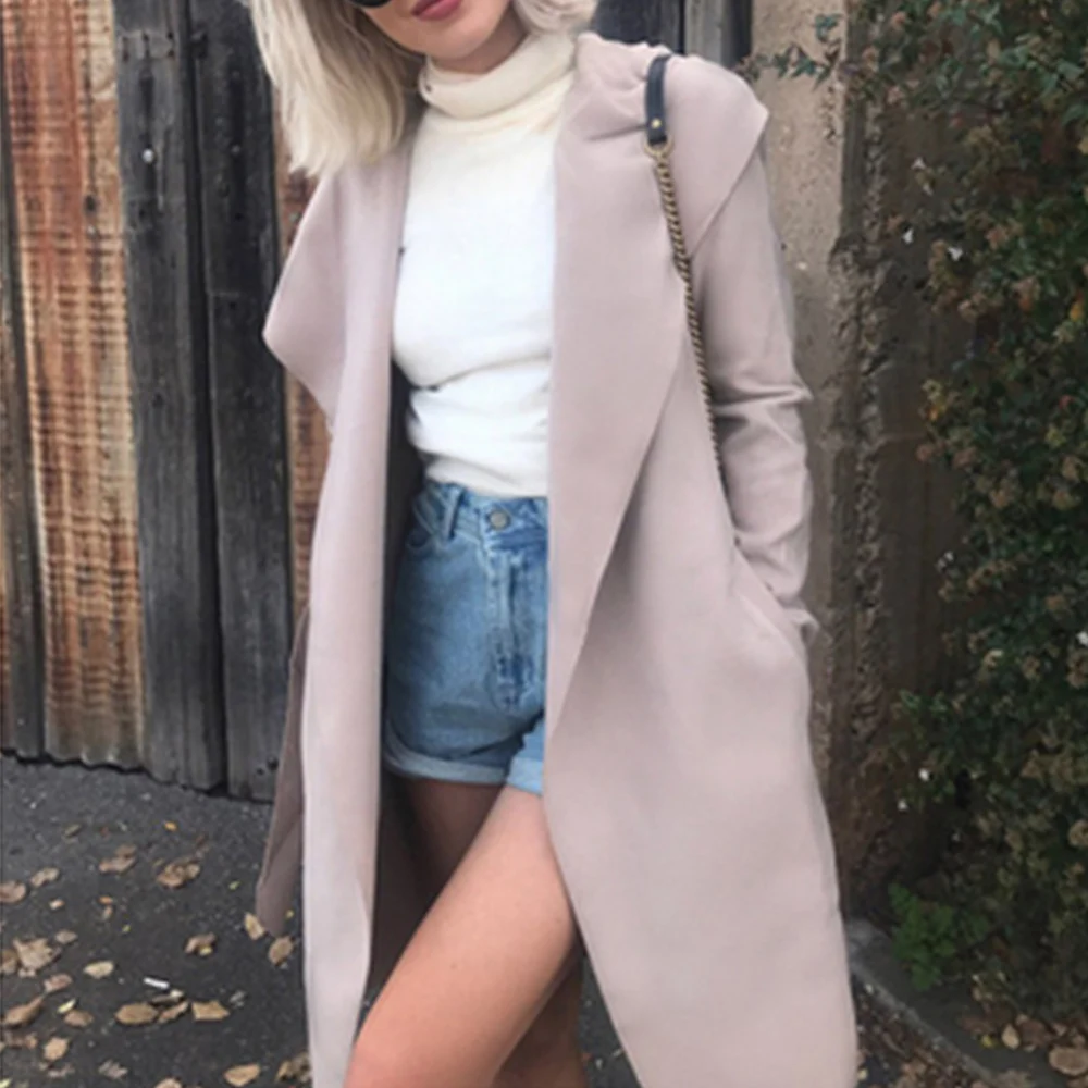 ОписаниеОсень зима с капюшоном воротник большой лацкане средней длины поясом Тренч пальто с длинным рукавом Размер s-xl для женщин Novel Monden N9