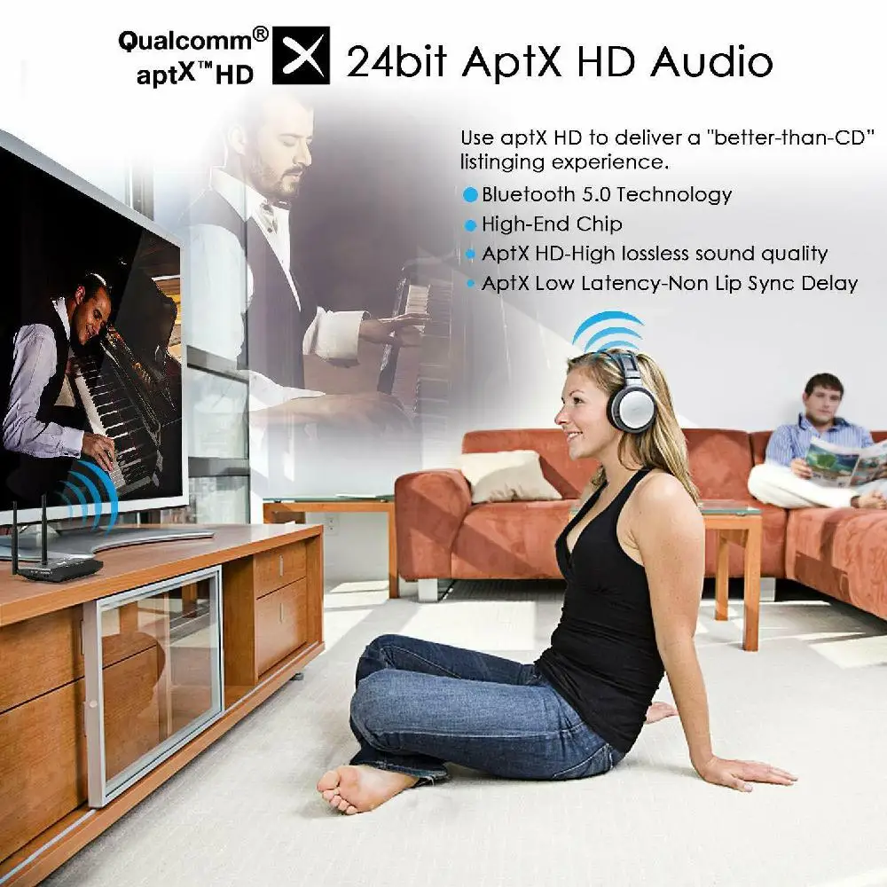 Примечание: Если вы хотите использовать его для просмотра телевизора и просмотра фильмов на вашем ПК, пожалуйста, убедитесь, что ваши bluetooth-наушники поддерживают низкую задержку APTX, в противном случае это будет иметь небольшую задержку звука.