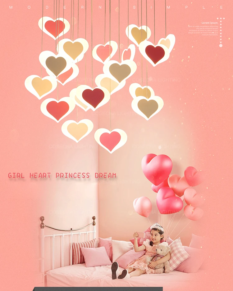 Романтический розовый подвесной светильник, светодиодный свадебный декоративный подвесной светильник, милая Подвесная лампа для спальни, креативная кухонная лампа для столовой