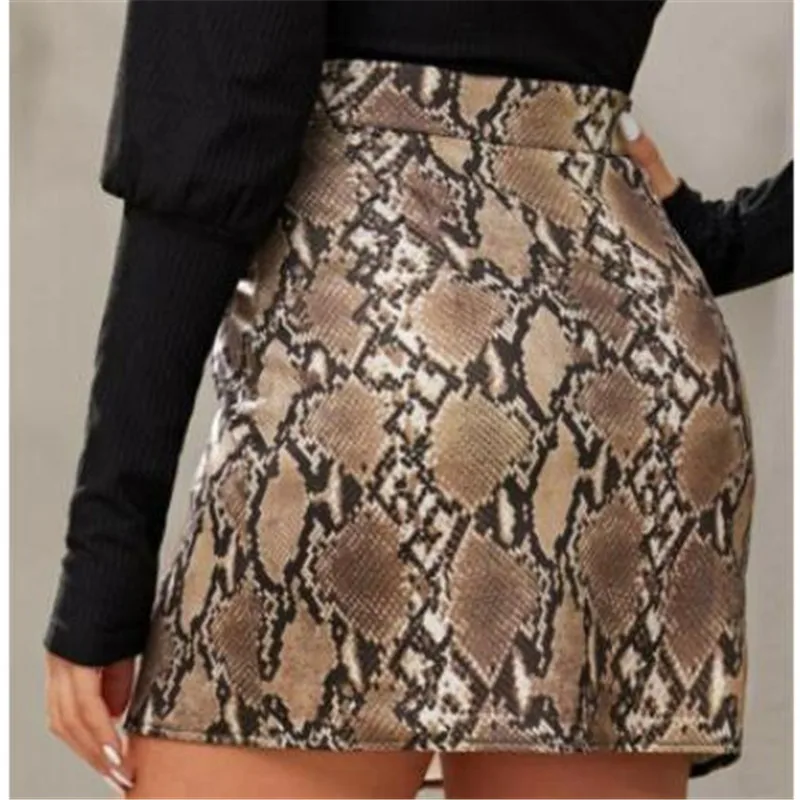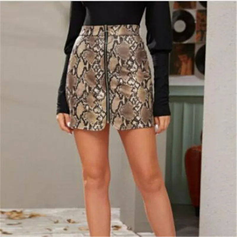 Женские юбки, новинка, змеиный принт, а-силуэт, высокая талия, Нижняя юбка, модная женская повседневная юбка из искусственной кожи на молнии, осень, хит продаж!