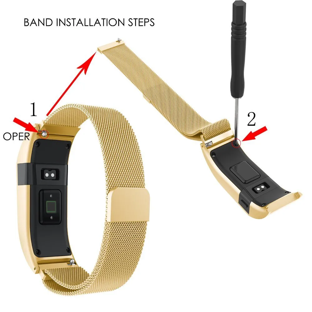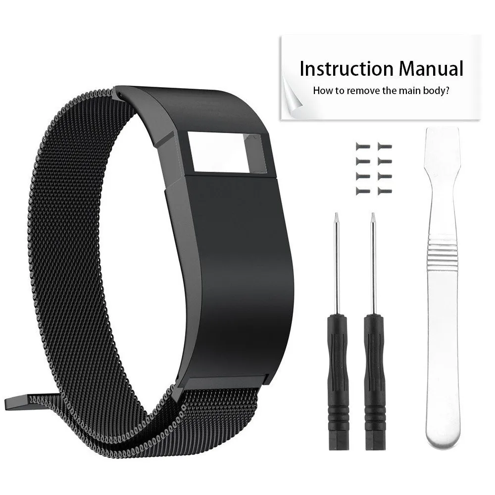 1 x Milanese Magnetic Loop Stainless Steel Watch Band With Case For Fitbit Charge HR1 x Stainless Steel Case2 x Bolt driver1 x Warpage8 x Screw1 x Manual