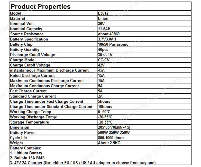 36 В 6AH Размер: 200*70*50 мм (разница: +/-5 мм) 36 В 9AH Размер: 200*70*70 мм (рассеивание: +/-5 мм) 36 В 12AH Размер: 205*85*70 мм (рассеивание: +/-5 мм) 36 В 15AH Размер: 200*105*70 мм (рассеивание: +/-5 мм) Примечание: Если выбранная вами батарея составляет 1000 Вт-1500 Вт. Толщина батареи 70 мм. Если аккумулятор 2000 Вт, толщина аккумулятора 80 мм.Хранится на складе -Для поддержания емкости аккумулятора, аккумулятор и батарейный блок рекомендуется хранить-20 ~ 35, низкая влажность и отсутствие коррозионного газа. -Батареи избегаются при высокой температуре или высокой влажности хранения, в противном случае приведут к утечке батареи, ржавчине и емкости ниже. -Долгосрочное хранение приведет к уменьшению емкости аккумулятора и аккумуляторного блока, а максимальная емкость разряда может быть выполнена после 1-3 цикла заряда/разряда. -Через три месяца аккумулятор должен заряжаться и разряжаться. Предупреждение: -Не допускайте обратную зарядку, должна быть батарея в соответствии с полярностью правильного подключения, не для обратного. -Не допускайте короткого замыкания, иначе это может привести к постоянному повреждению. -Аккумулятор не может использоваться в экстремальных условиях, таких как: предельная температура, глубина цикла, экстремальный перезаряд и разрядка. -Храните батареи в прохладном, сухом месте, если большое количество батарей сохранено или отправлено. -Не размещайте непосредственно на припое батареи. -Если батарея шумит, высокая температура, утечка и другие ненормальные ситуации, пожалуйста, перестаньте использовать. -Не кладите в огонь и не пытайтесь разобрать, батарея может сгореть или производить вредные вещества. -Не допускайте использование старого аккумулятора или половины аккумулятора с новым аккумулятором, в противном случае он будет производить разряд. -Не отрезайте корпус и не извлеките трубку куртки батареи. -Не допускайте попадания батареи в воду. Примечание: -Аккумулятор должен быть заряжен перед использованием. -Метод зарядки в соответствии с нашими техническими характеристиками. -Используйте зарядное устройство для зарядки. -Батареи следует избегать при использовании герметизации, следует обеспечить соответствующее вентиляционное устройство, в противном случае батарея может производить водород, в чехол точки зажигания вызовет взрыв. -Не пытайтесь разъединить батарею или выдавливать и коллизировать, может привести к жар батареи, яростный, пролитый щелочной электролит повредит кожу и глаза также могут есть одежду. -Следует держать батарею подальше от ребенка, при проглатывании немедленно обратитесь к врачу. Когда аккумулятор не используется, его следует снять с оборудования. -При первом использовании новой батареи или длительном использовании хранения, использование электричества до. -Не прикасайтесь к батарее, когда она горячая, пока она не остынет. -При использовании аккумулятора устройство следует выключать при использовании энергии, чтобы избежать перегрузки. -Вытяните батарейный блок, должен удерживать клемму аккумулятора и не может удерживать линию. -После использования аккумулятора, если аккумулятор горячий, его можно разместить в месте, где воздух не находится непосредственно в месте вентиляции и без прямых солнечных лучей.