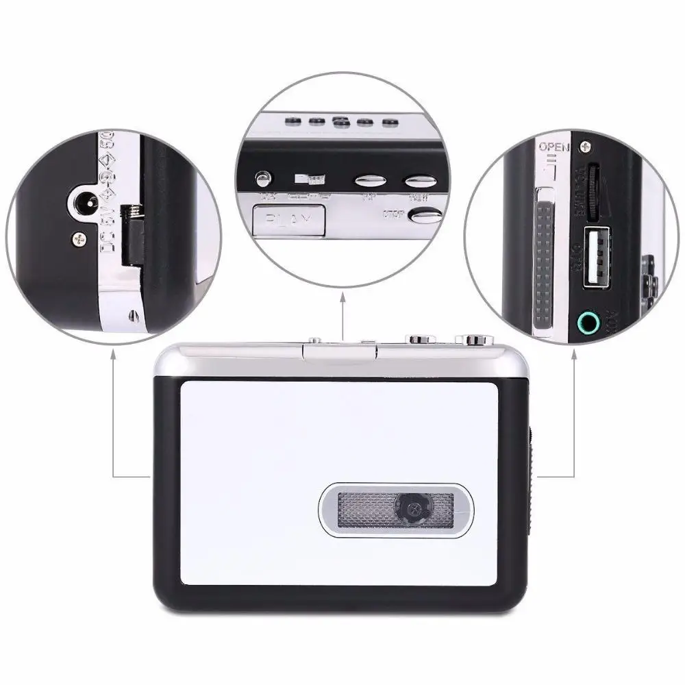 Кассетный плеер лента к MP3 постоянного тока в переменный конвертер, вы можете легко преобразовать свою старую ленту MP3 без компьютера и автоматическая перегородка каждой песни лента, вам просто нужно подключить флеш-диск usb, затем нажмите кнопку "запись", Устройство преобразует любую музыку на пленку на ваш usb-диск в MP3 формат автоматически. Вы также можете воспроизводить на нем, или просто положите USB в другое место (компьютер, портативный динамик, и т. д.) для воспроизведения записанной музыкой.