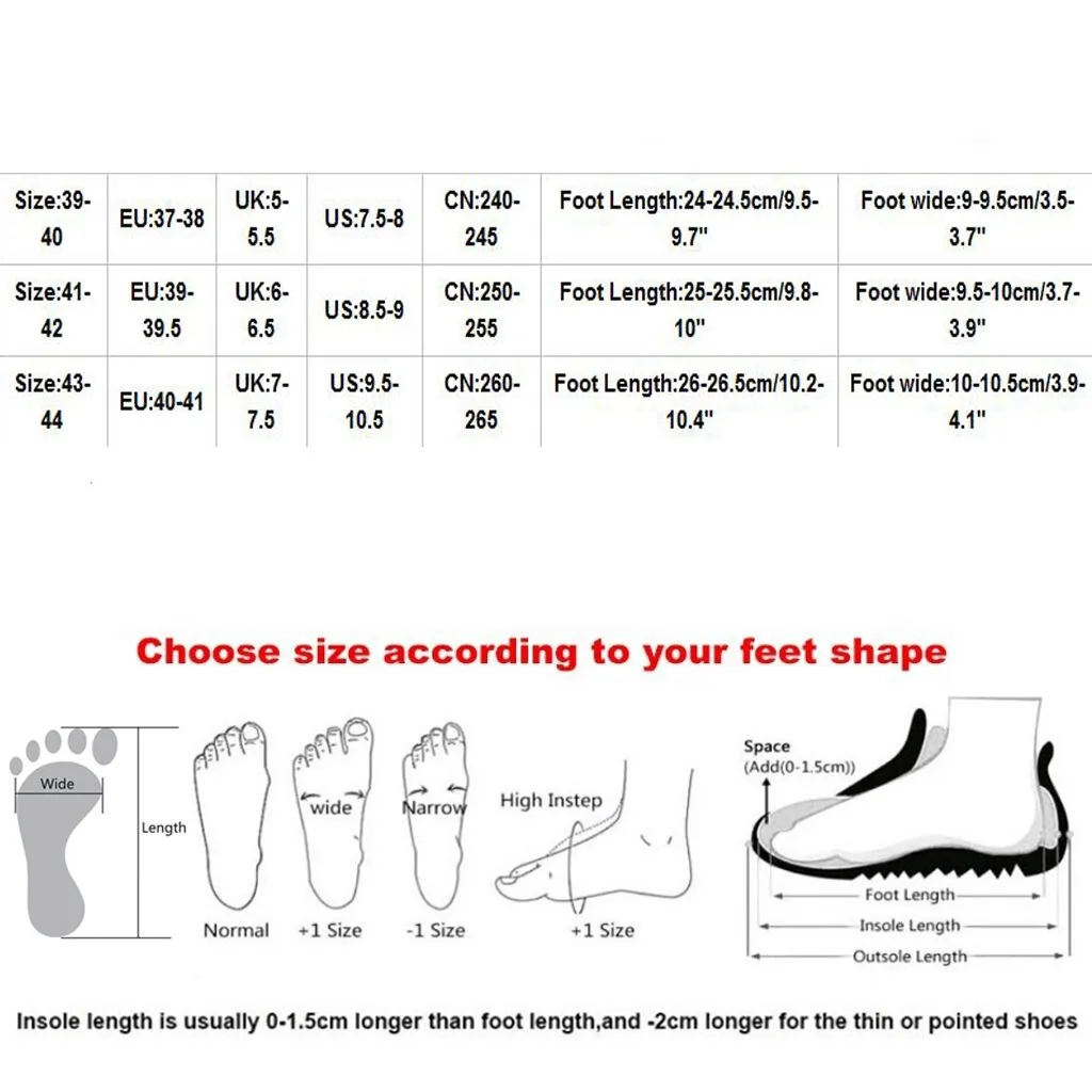 Полезные советы: Различные стили обуви, пожалуйста, выберите размер в соответствии с типом вашей стопы.
