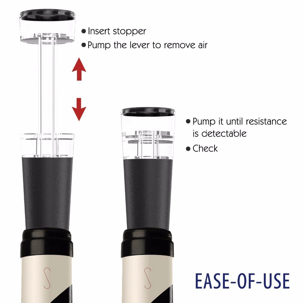 Первый шаг: вставьте вакуумную винную пробка в узкое место. Второй шаг: несколько раз Потяните винную пробку вверх и вниз, чтобы вынуть воздух из винной бутылки. Третий шаг: после увеличения до тех пор, пока вы не сможете вытянуть винную пробку, она будет автоматически возвращена, а затем бутылка будет вакуумной.